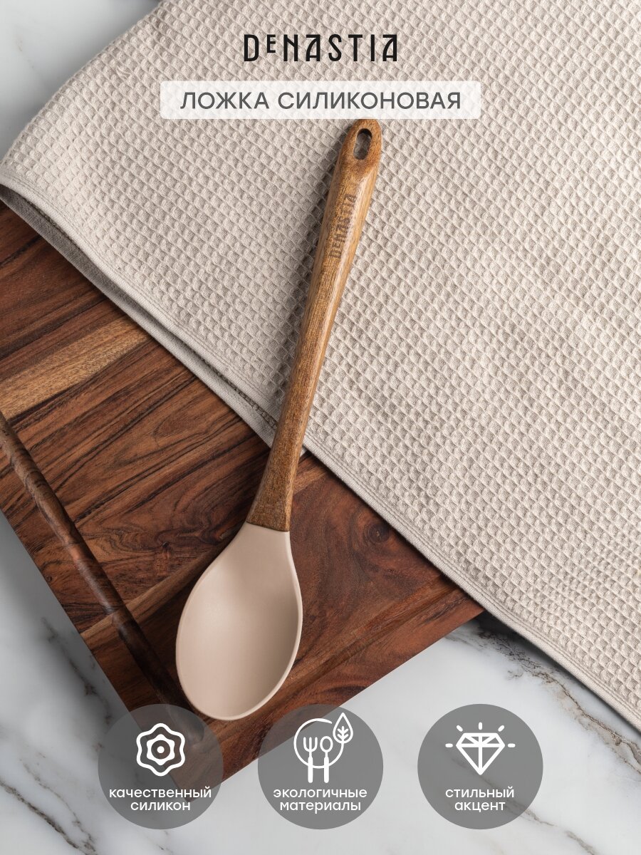 Ложка кулинарная DeNASTIA с деревянной ручкой 33x6x1,6см, силикон + акация, цвет бежевый интересное: