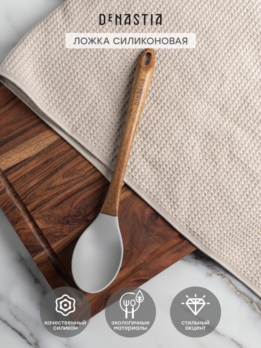 Ложка кулинарная DeNASTIA с деревянной ручкой 33x6x1,6см, силикон + акация, цвет серый интересное: