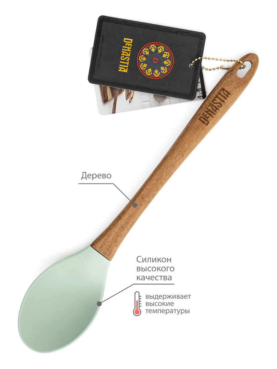 Ложка кулинарная DeNASTIA с деревянной ручкой 33x6x1,6см, силикон + акация, цвет мятный интересное:
