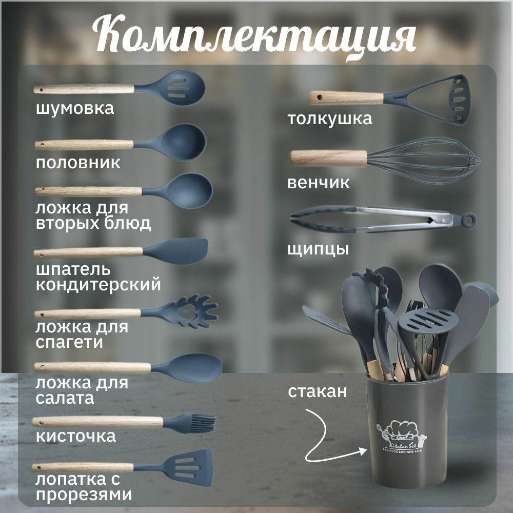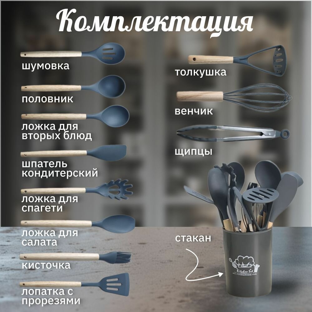 Набор кухонных принадлежностей силиконовый со стаканом 12 предметов интересное: