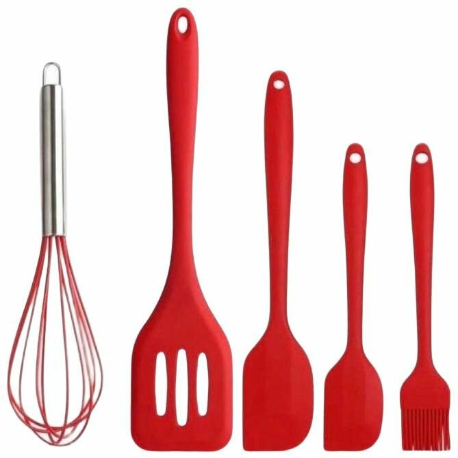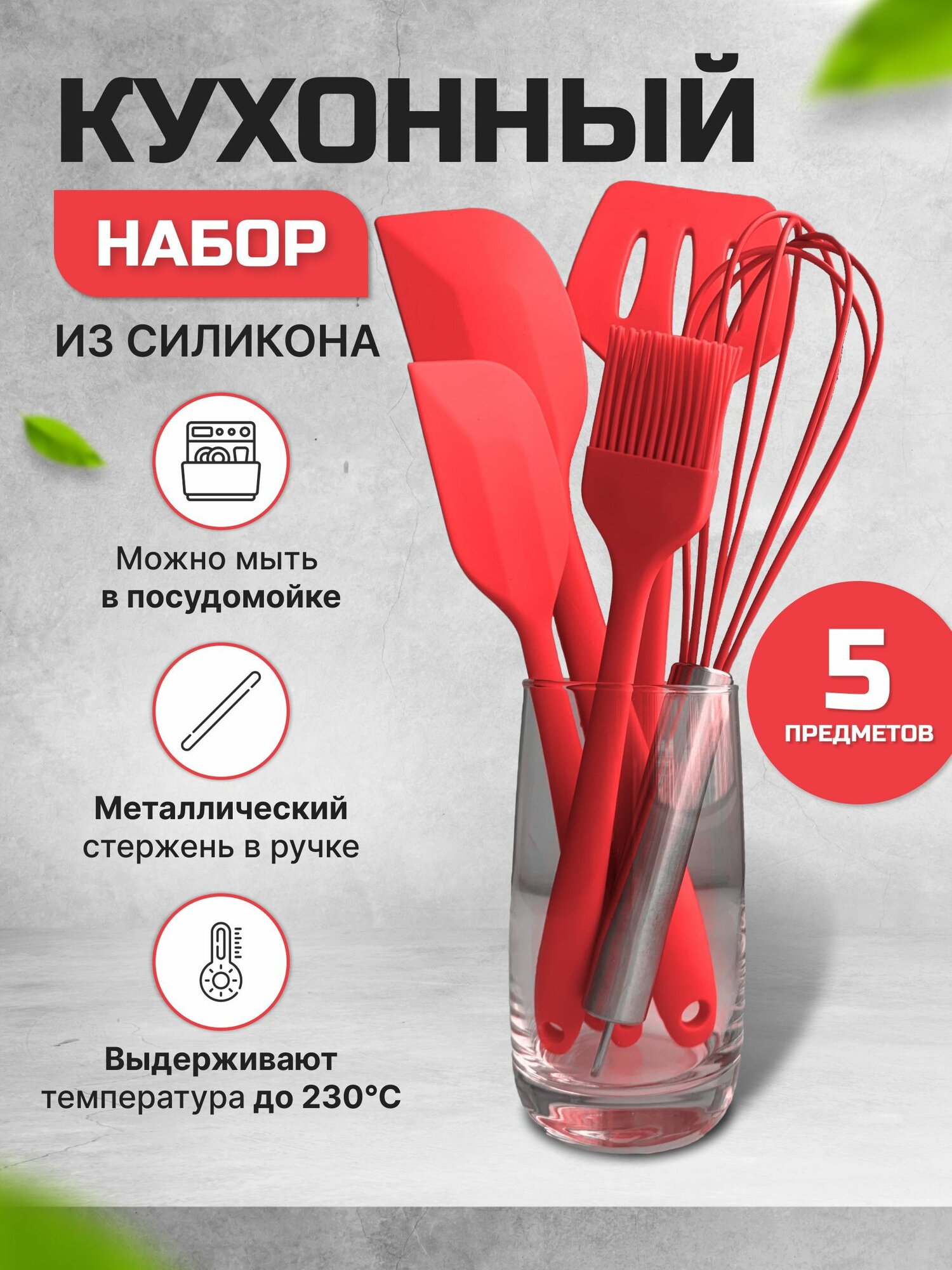 Купить Набор кухонных принадлежностей/ Силиконовые кухонные приборы, лопатки в наборе, 5 предметов, красный