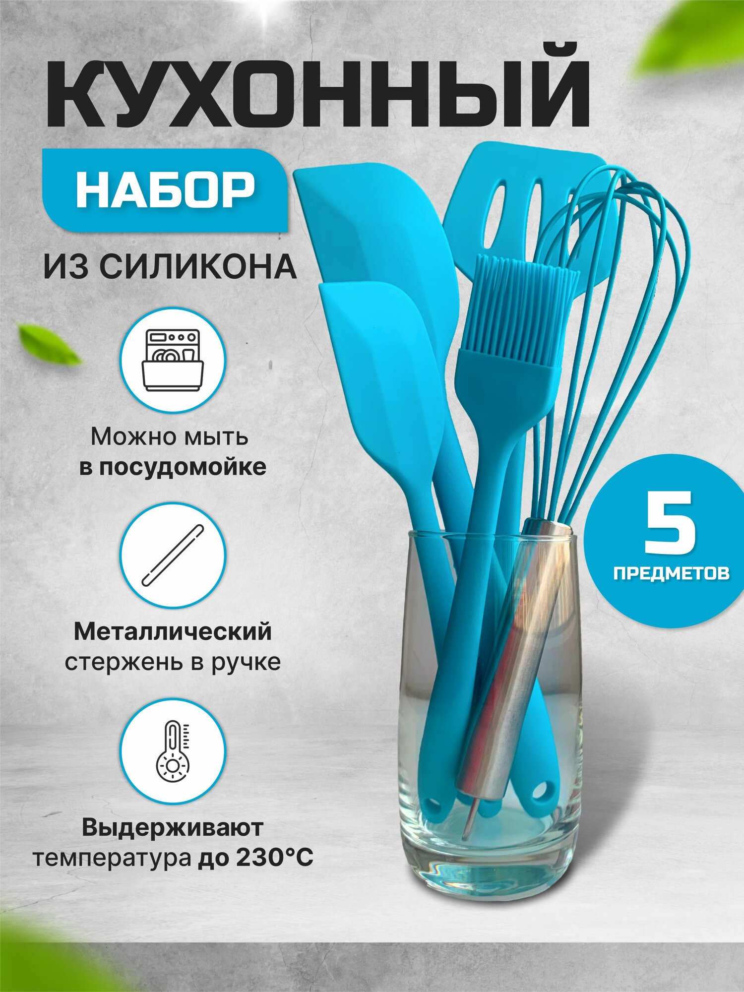Набор кухонных принадлежностей/ Силиконовые кухонные приборы/ кухонные лопатки в наборе, 5 предметов, голубой интересное: