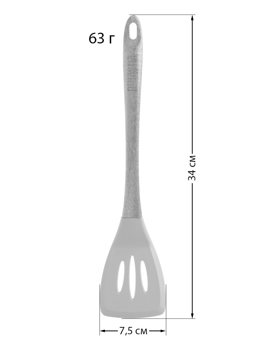 Лопатка кулинарная с прорезями DeNASTIA с деревянной ручкой 34x7,5x1,6см, силикон + акация, серая