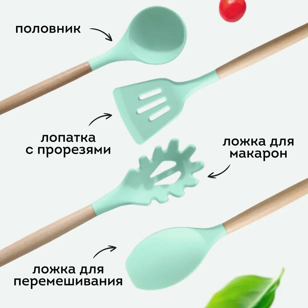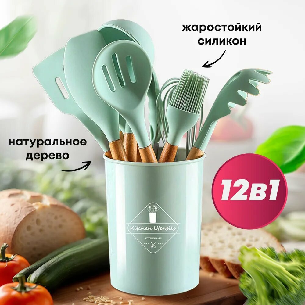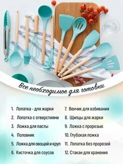 Набор кухонных принадлежностей, 12 силиконовых предметов с деревянной ручной интересное: