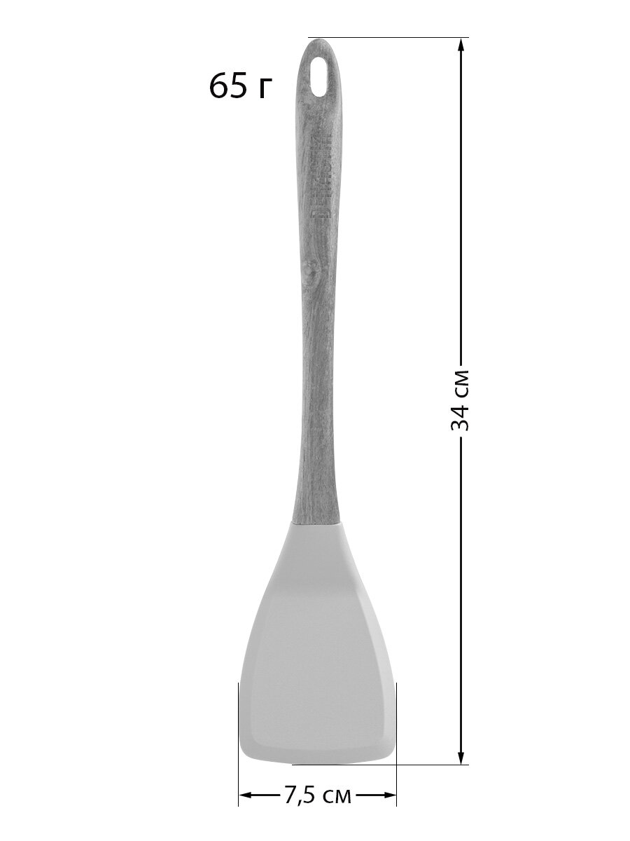 Лопатка кулинарная DeNASTIA с деревянной ручкой 34x7,5x1,6см, силикон + акация, серая