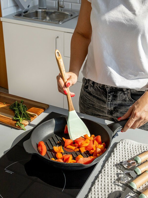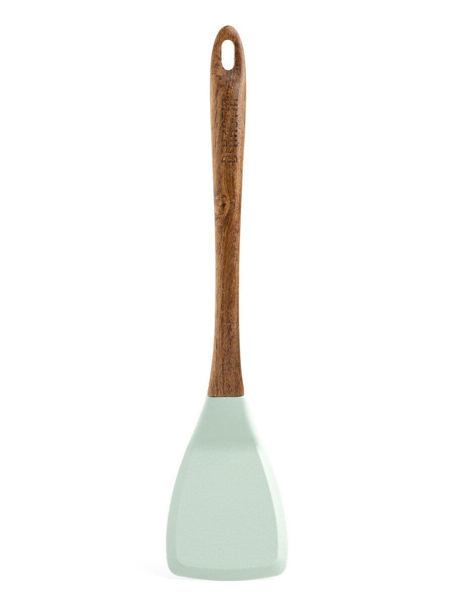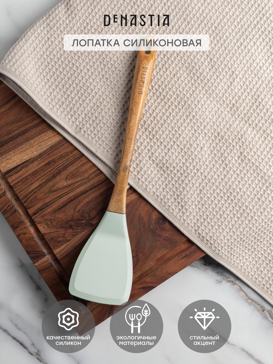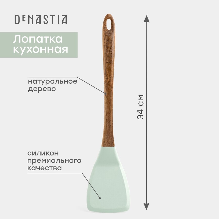 Лопатка кулинарная DeNASTIA с деревянной ручкой 34x7,5x1,6см, силикон + акация, мятная интересное: