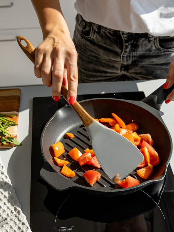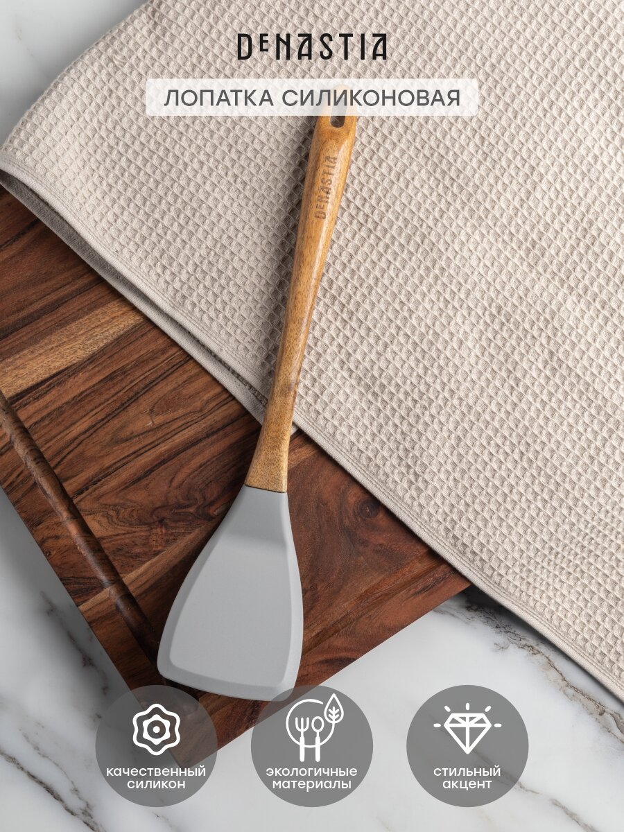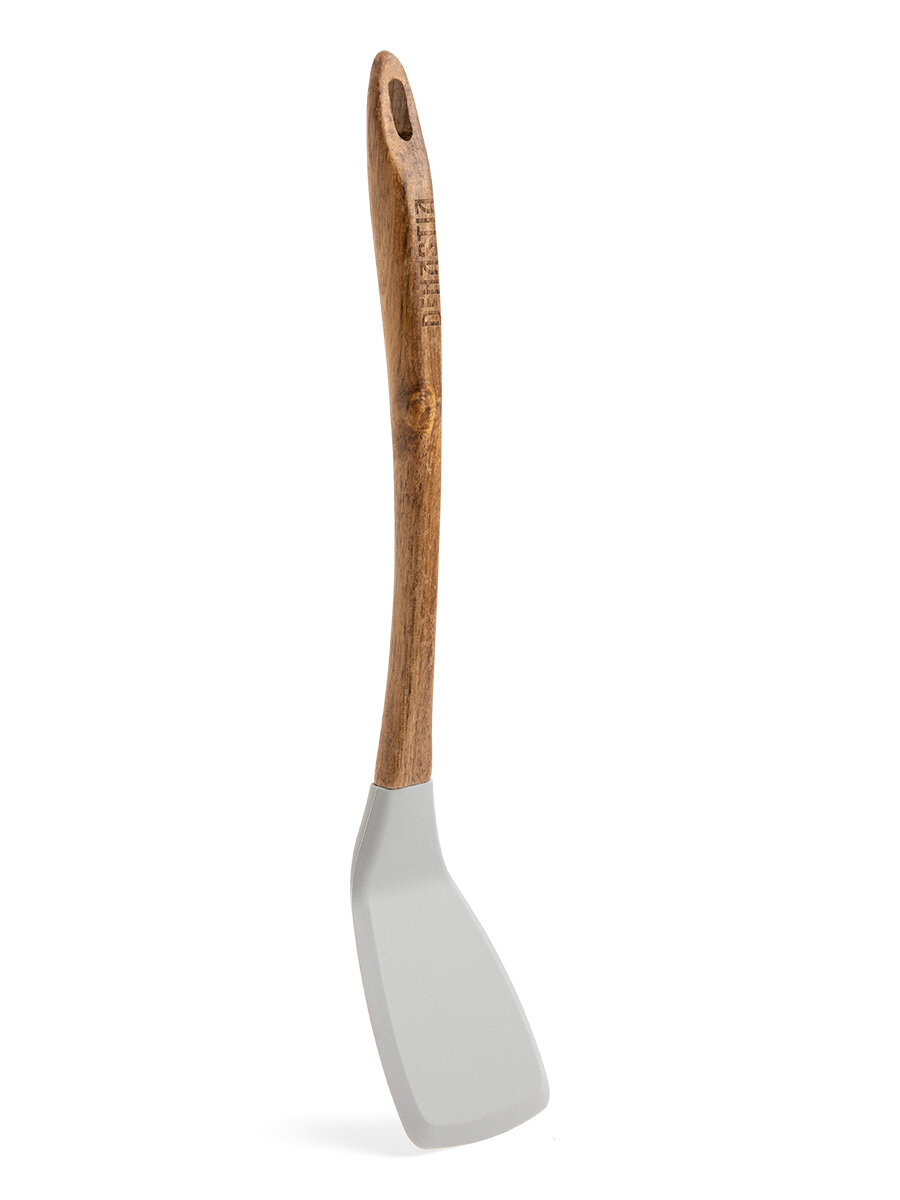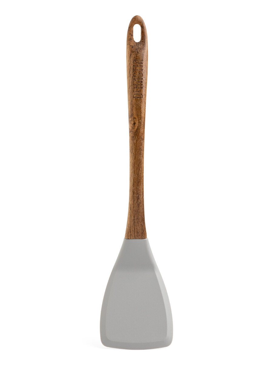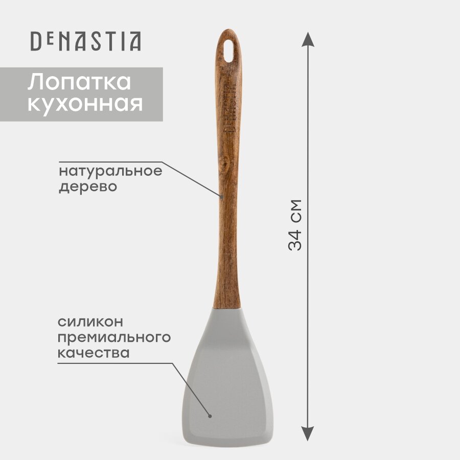 Лопатка кулинарная DeNASTIA с деревянной ручкой 34x7,5x1,6см, силикон + акация, серая интересное: