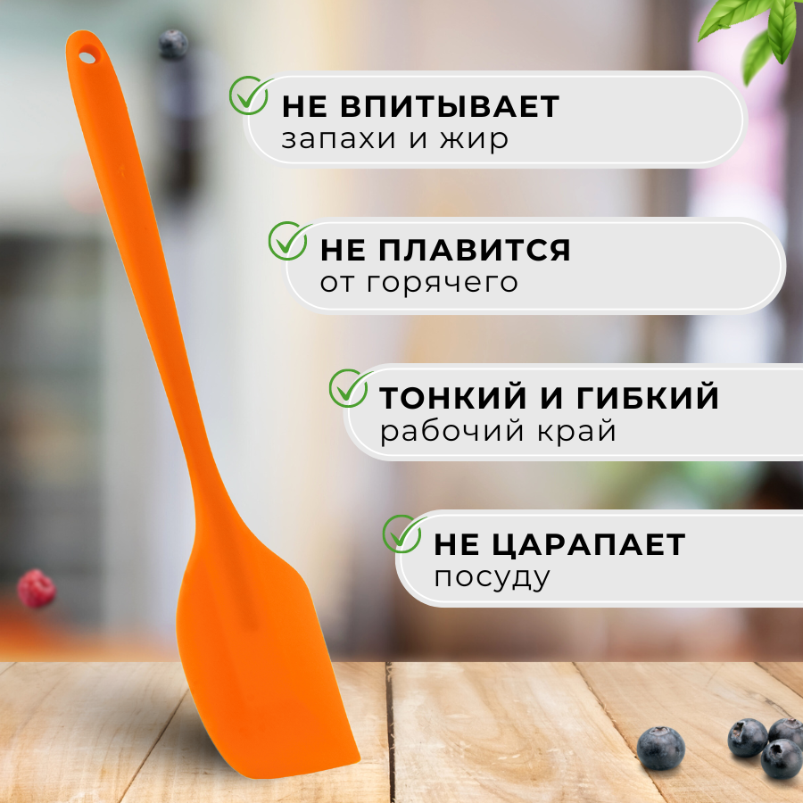 Купить Лопатка кухонная силиконовая 28 см, цвет оранжевый, лопатка кондитерская силиконовая, лопатка кулинарная силиконовая, лопатка для кухни CGPro