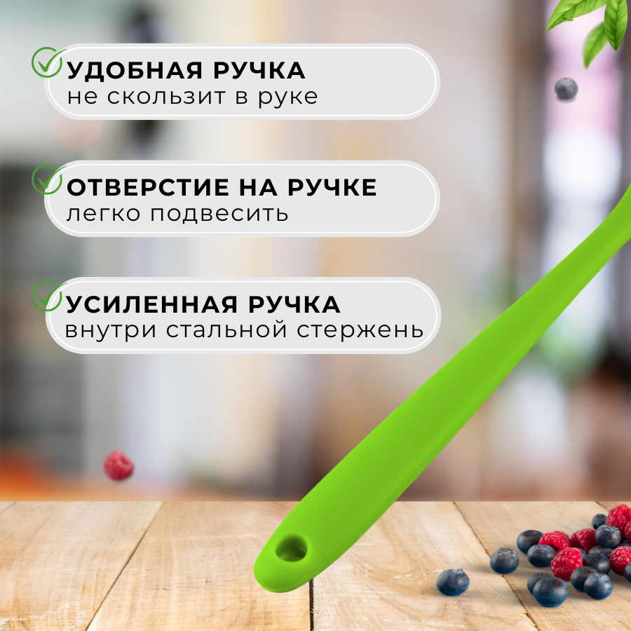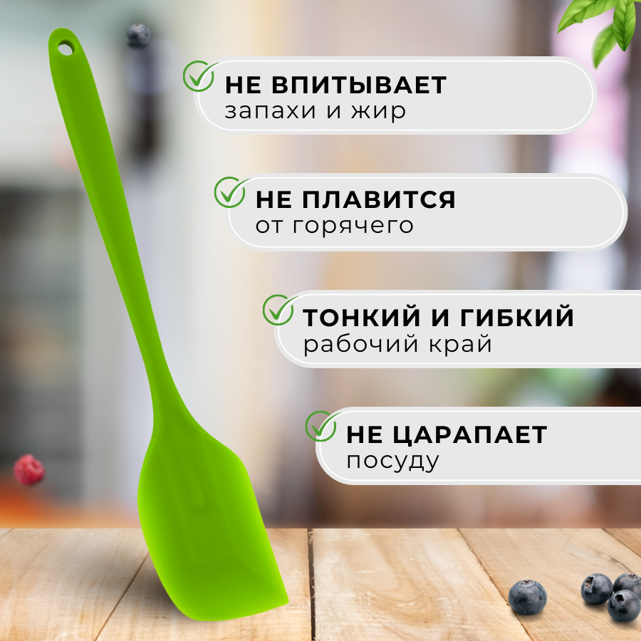 СохранитьЛопатка кухонная силиконовая 28 см, цвет зеленый, лопатка кондитерская силиконовая, лопатка кулинарная силиконовая, лопатка для кухни CGPro интересное: