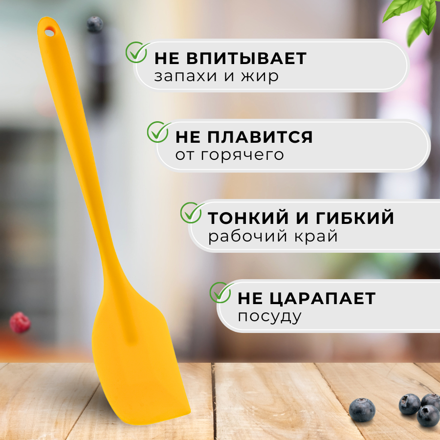 Купить Лопатка кухонная силиконовая 28 см, цвет желтый, лопатка кондитерская силиконовая, лопатка кулинарная силиконовая, лопатка для кухни CGPro