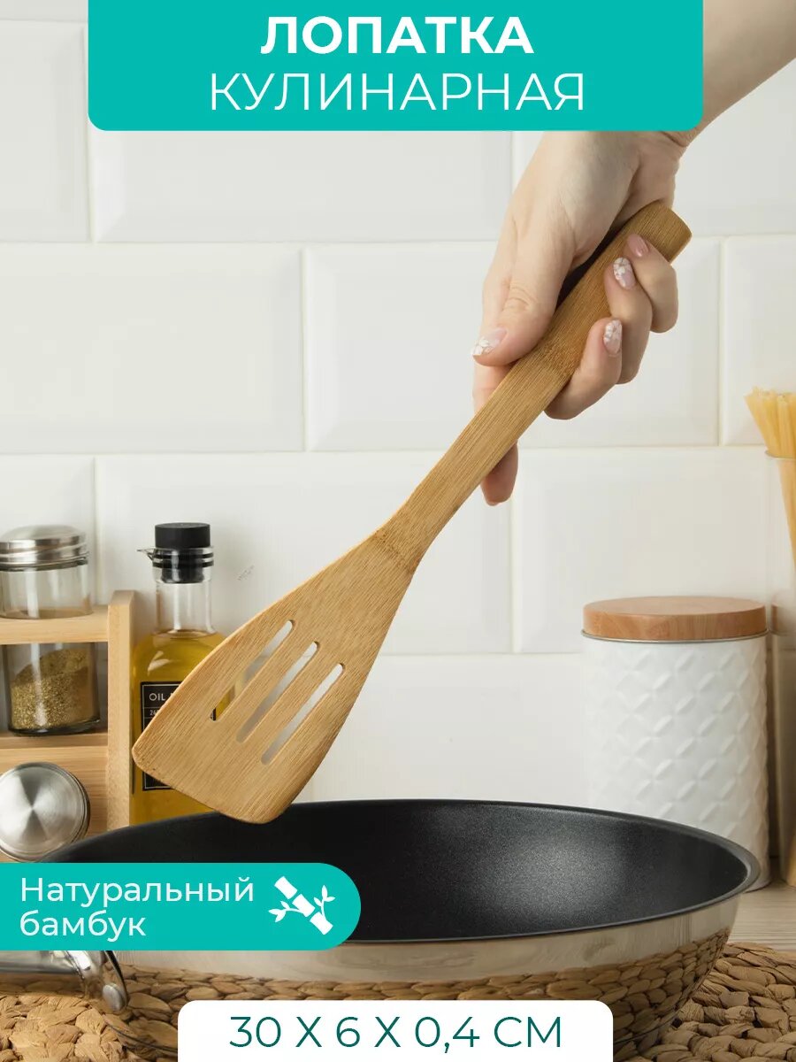 Лопатка кулинарная с прорезями 30 см, бамбук интересное: