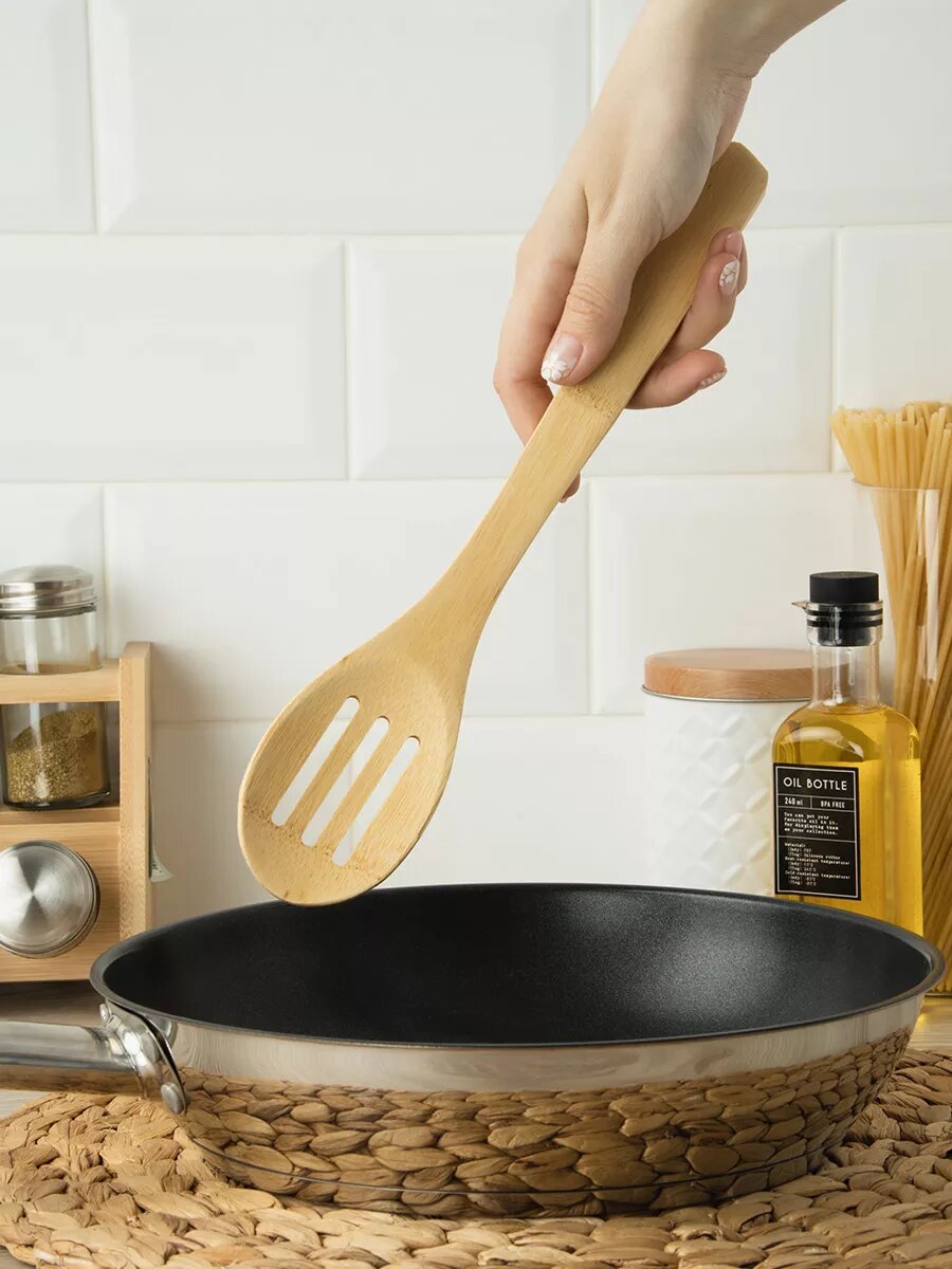 Лопатка-ложка кулинарная с прорезями 30 см, бамбук