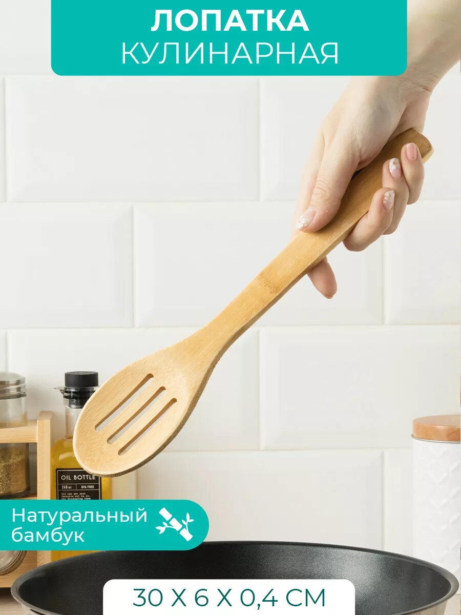 Лопатка-ложка кулинарная с прорезями 30 см, бамбук интересное: