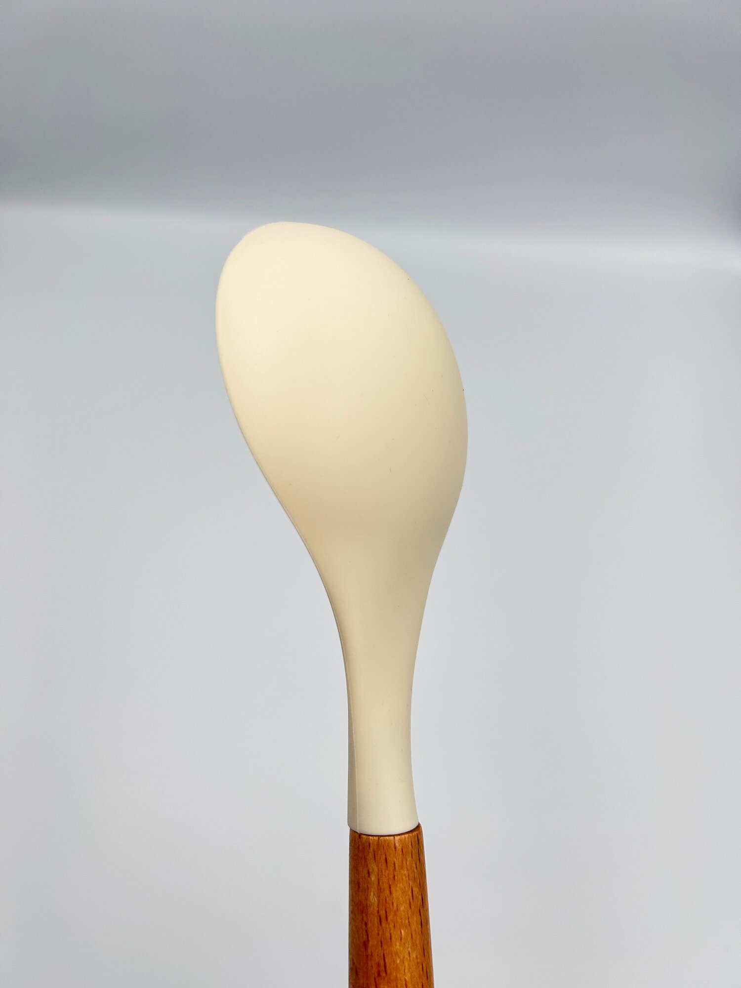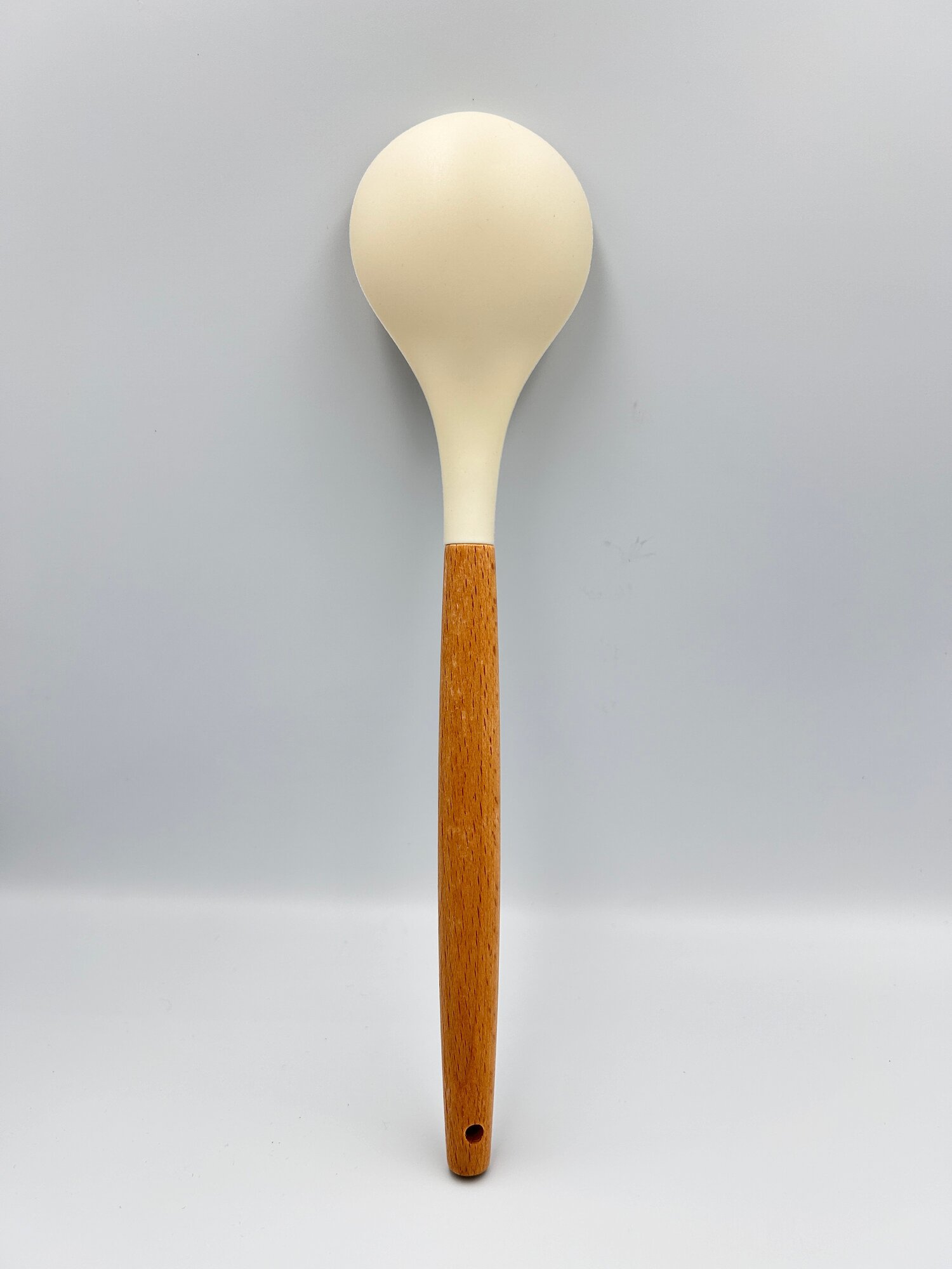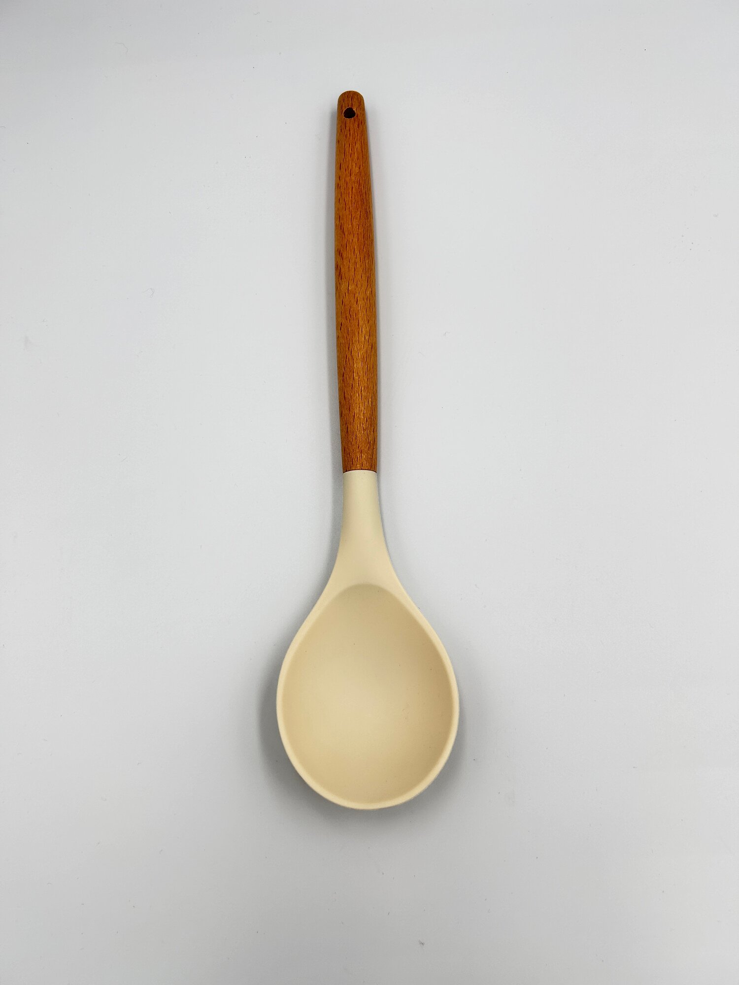 Купить Ложка кулинарная силиконовая с деревянной ручкой hilZz 32 см, молочная