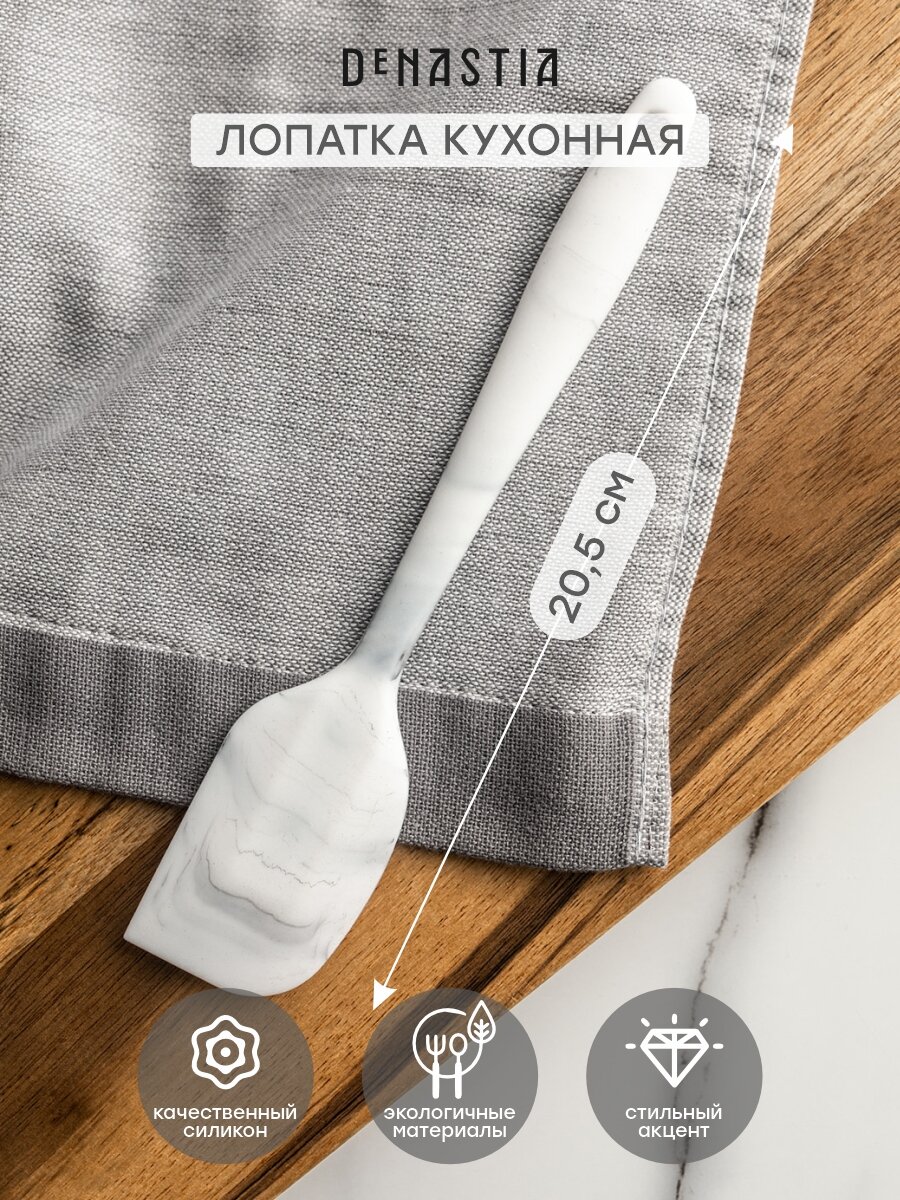 Лопатка кулинарная со скошенным краем DeNASTIA 20,5x4,2см (малая), силикон, серый/белый интересное: