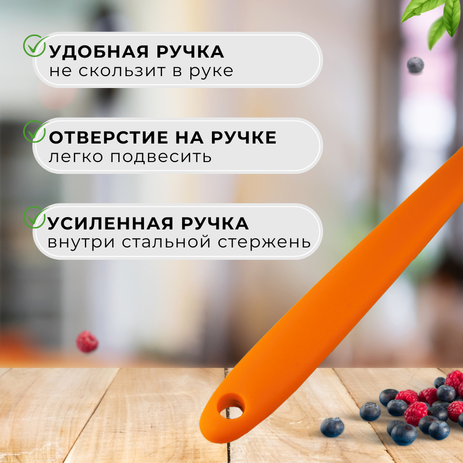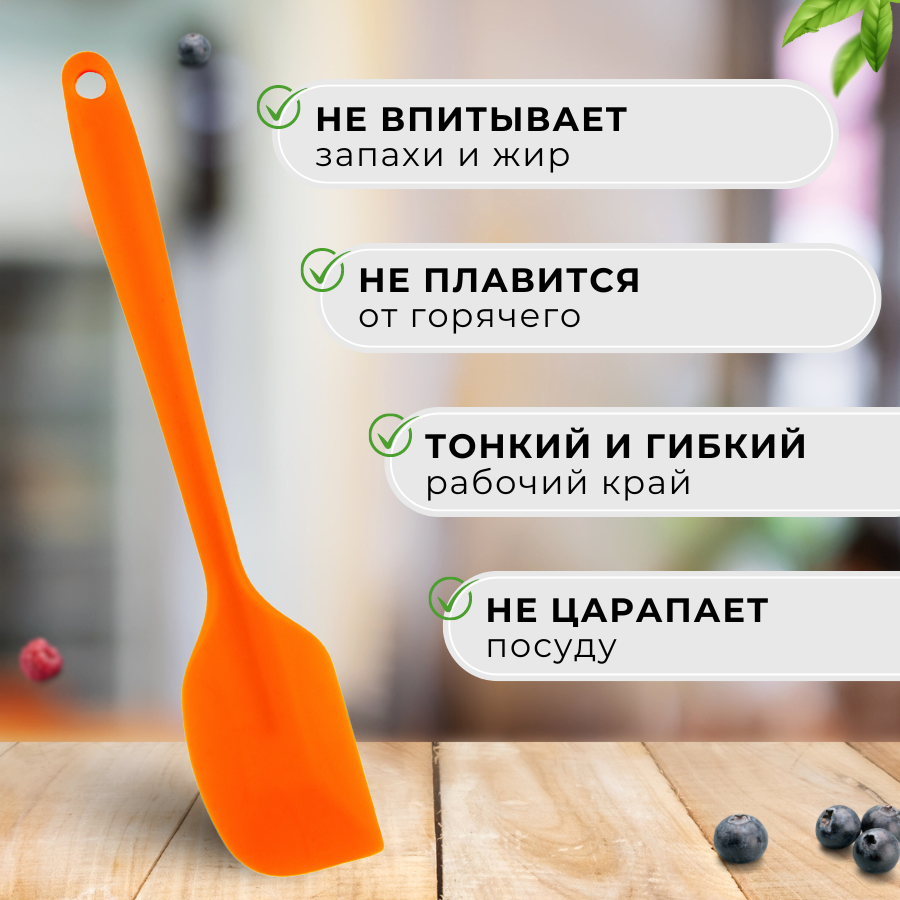 СохранитьЛопатка кухонная силиконовая 21 см, цвет оранжевый, лопатка кондитерская силиконовая, лопатка кулинарная силиконовая, лопатка для кухни CGPro интересное: