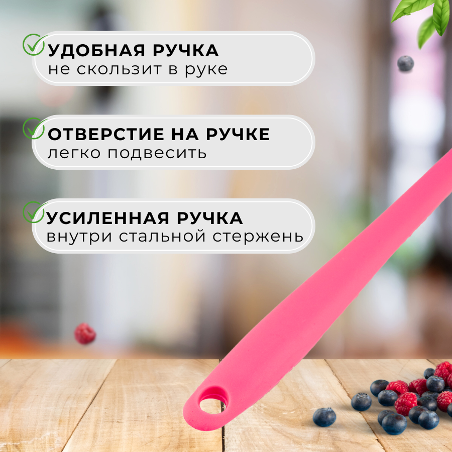 Купить Лопатка кухонная силиконовая 21 см, цвет розовый, лопатка кондитерская силиконовая, лопатка кулинарная силиконовая, лопатка для кухни CGPro