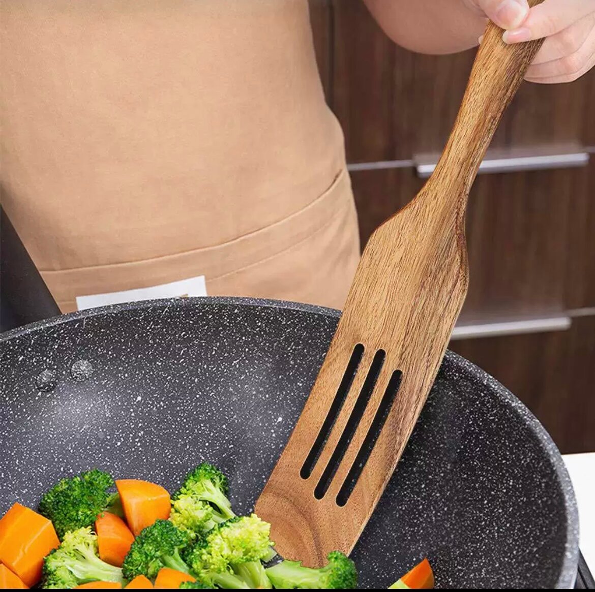 Лопатка для жарки деревянная, 33,5 см, нескользящая, с прорезями, интересное: