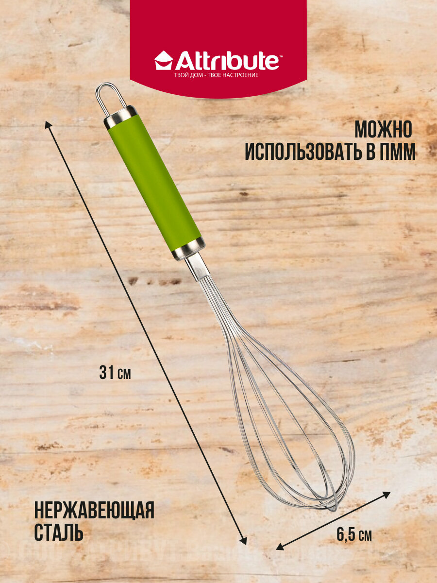 Венчик для взбивания "LIME", ATTRIBUTE GADGET, нержавеющая сталь/пластик интересное: