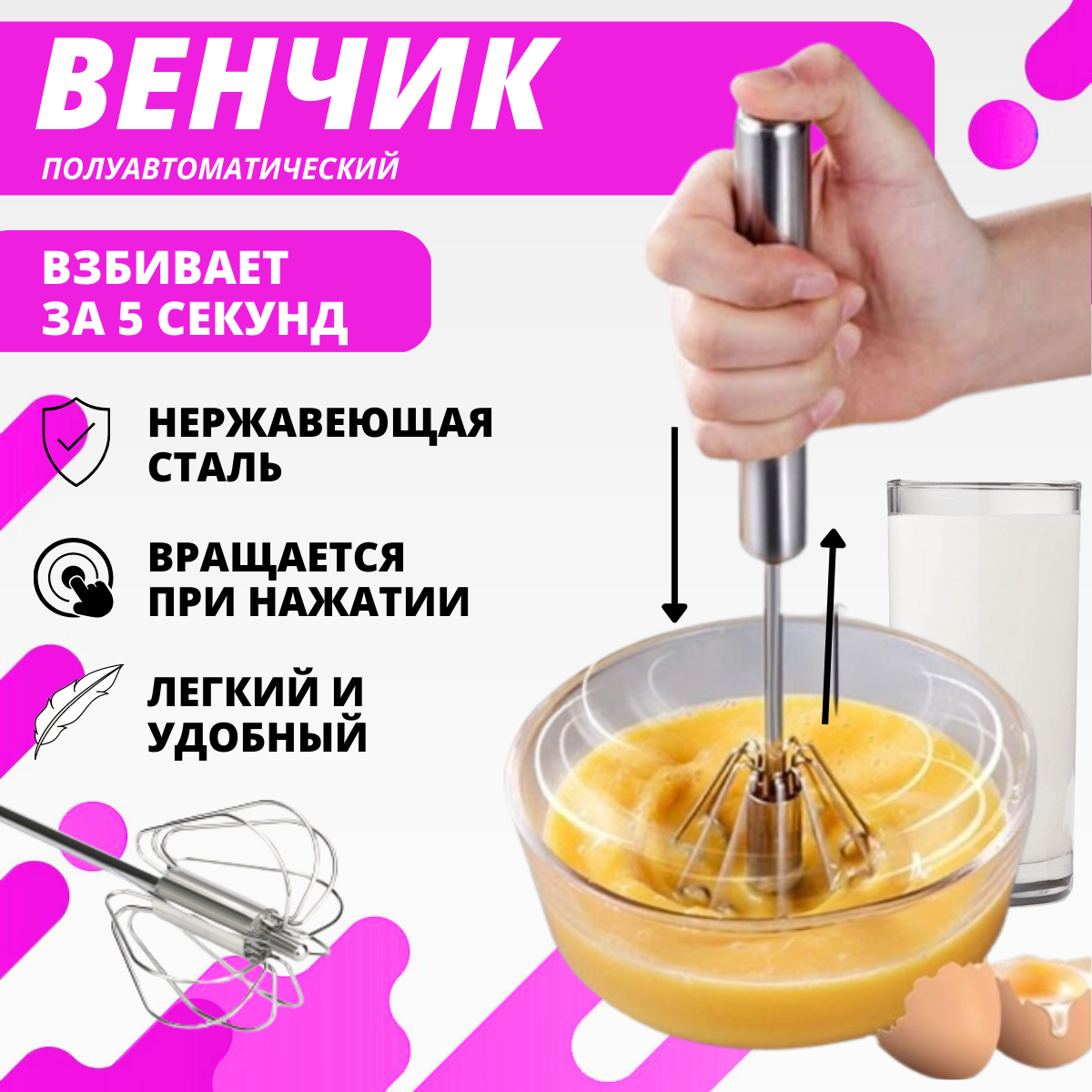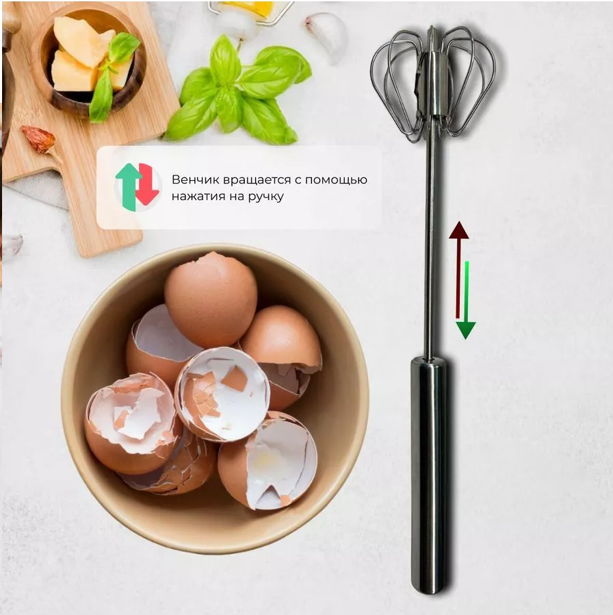 Венчик для взбивания ручной полуавтоматический, механический нажимной, миксер взбивалка интересное: