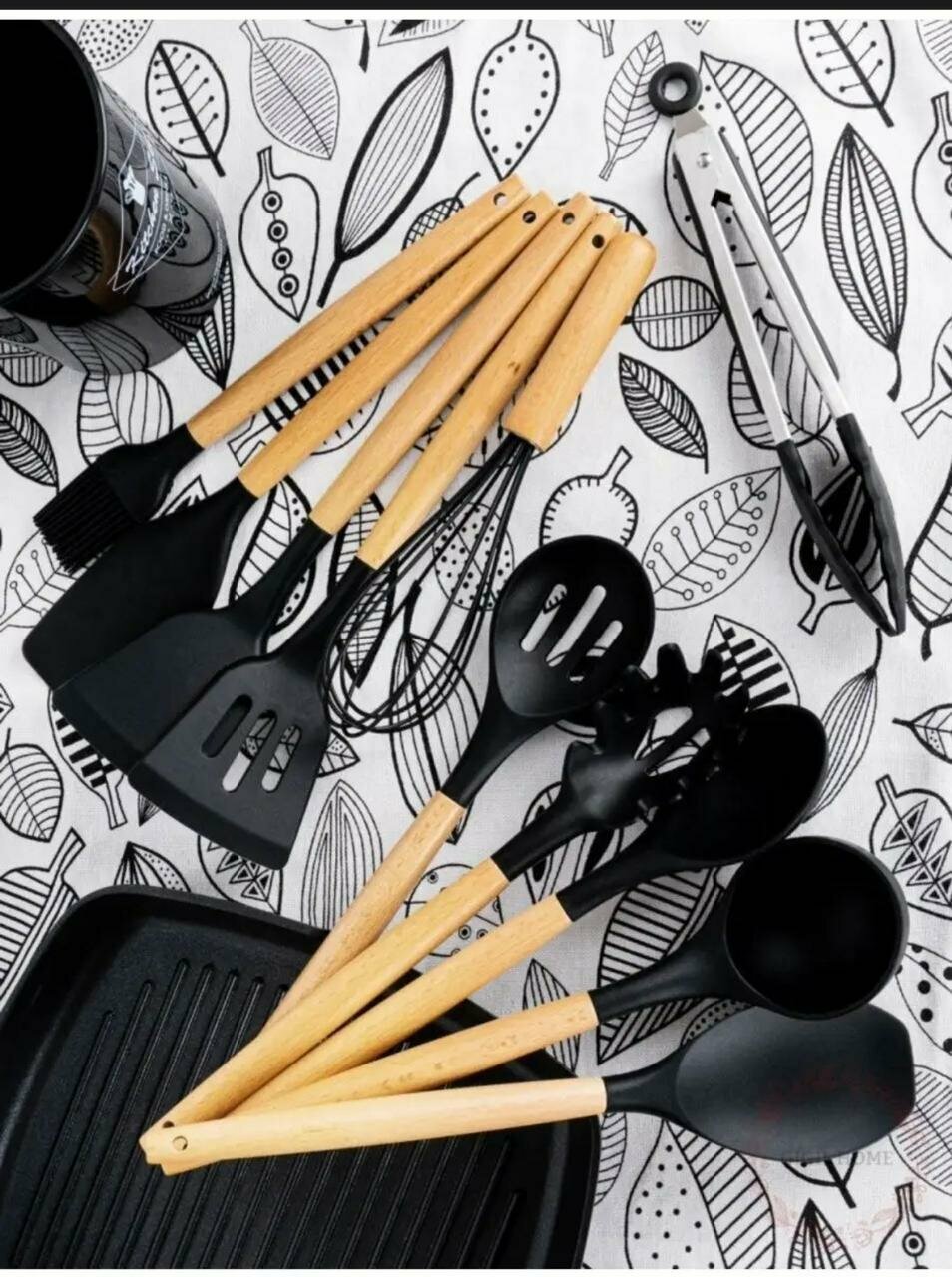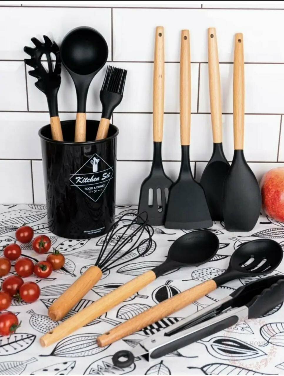 Набор кухонных принадлежностей, 12 предметов черный интересное:
