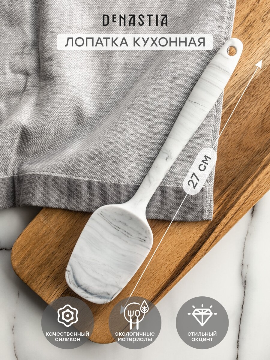 Лопатка кулинарная (большая) DeNASTIA 27x6см, силикон, серый/белый интересное:
