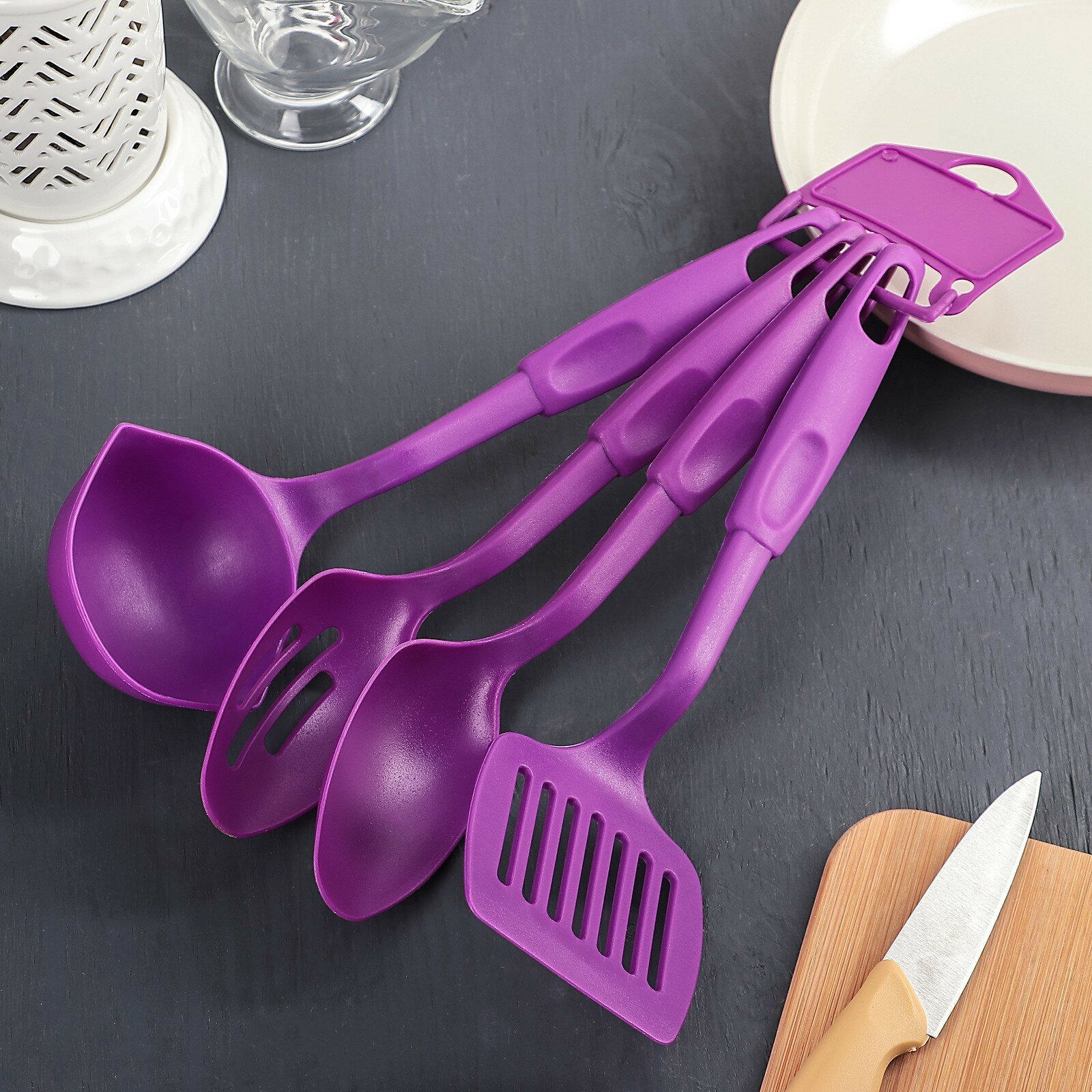 Набор кухонных принадлежностей Доляна «Радуга», 4 предмета, цвет фиолетовый, 130977 интересное: