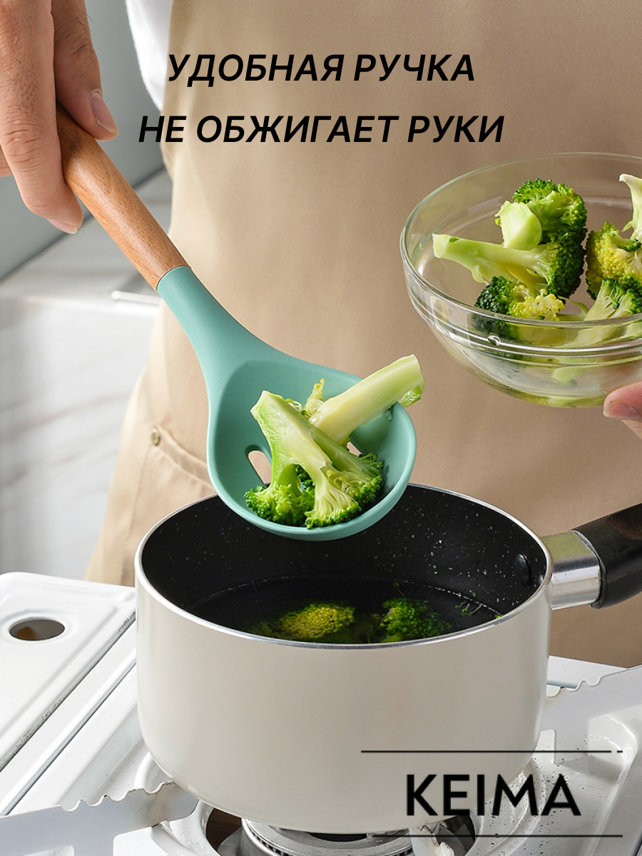 СохранитьНабор кухонных принадлежностей из силикона и бамбука, 12 шт с подставкой, цвет бирюзовый интересное: