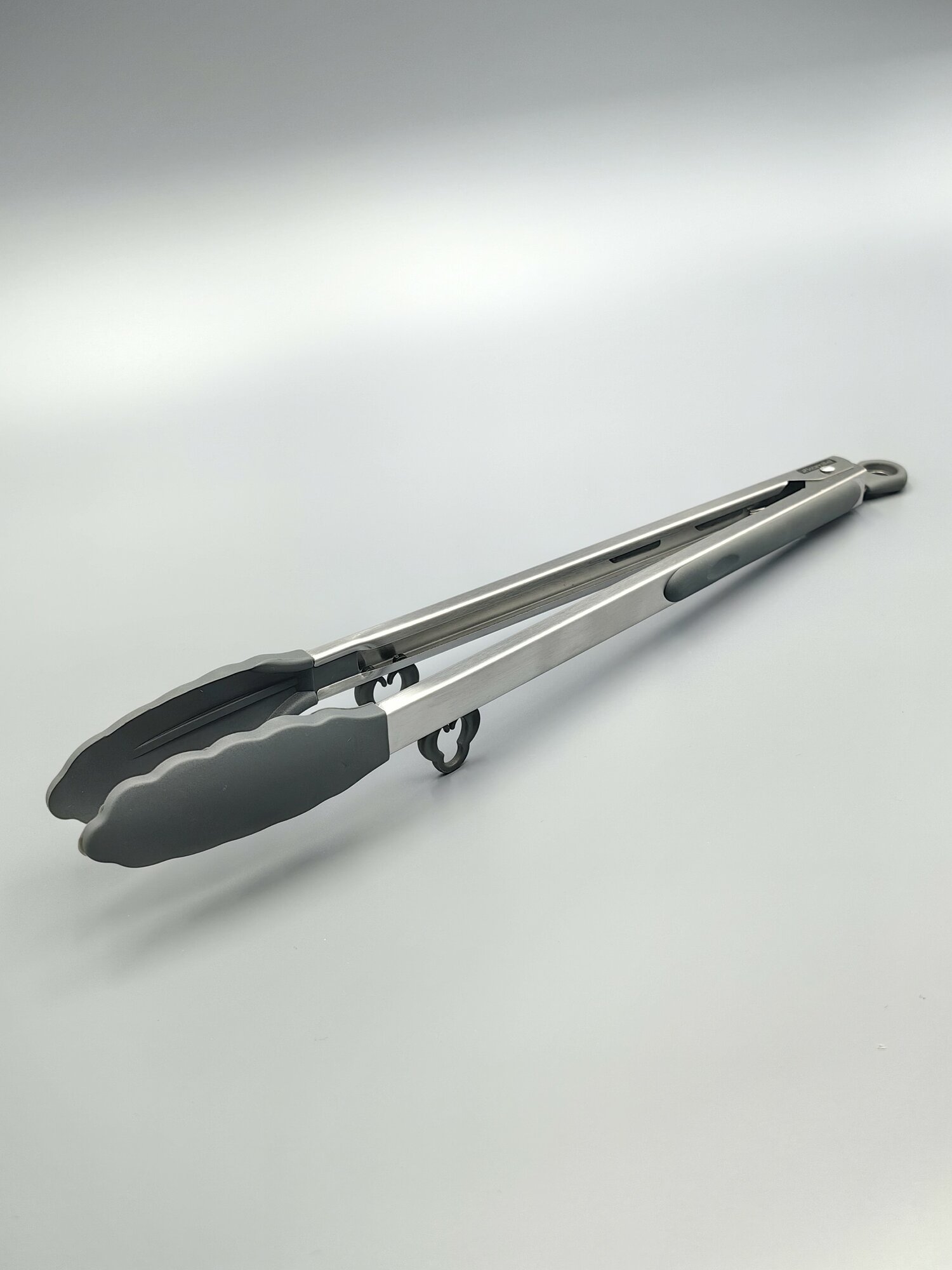Щипцы силиконовые 30,5 см. Kamille КМ 7512 с ручками из нержавеющей стали (7512 / серый)