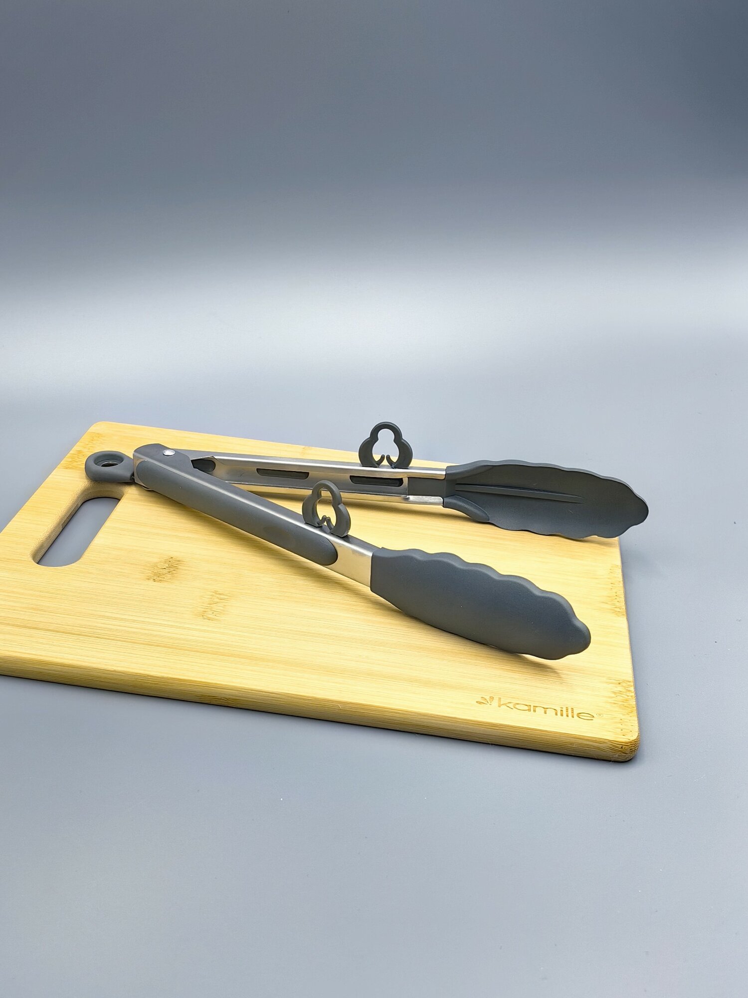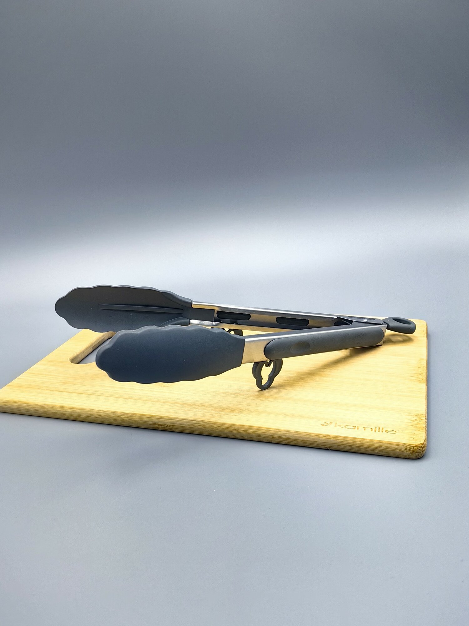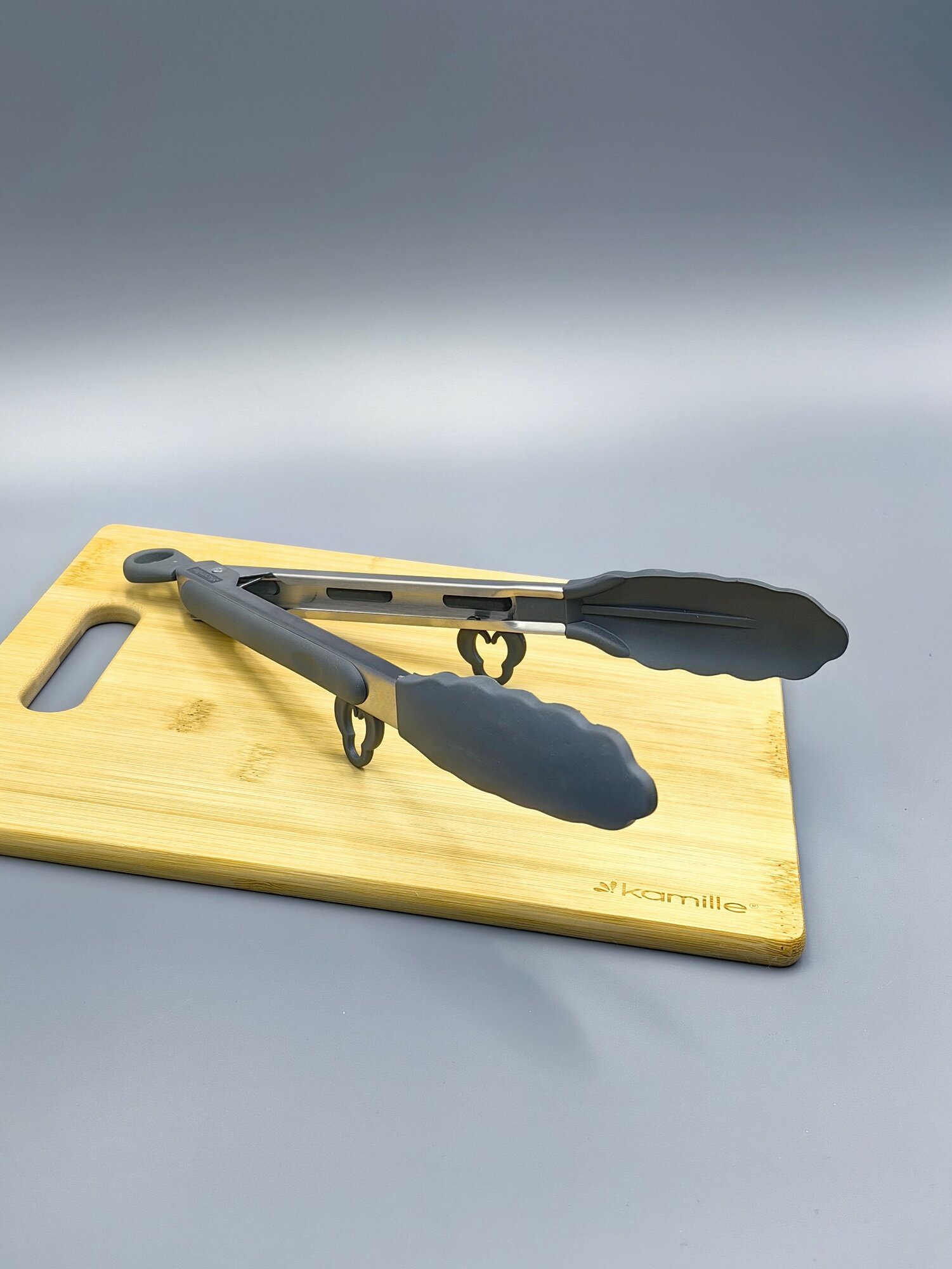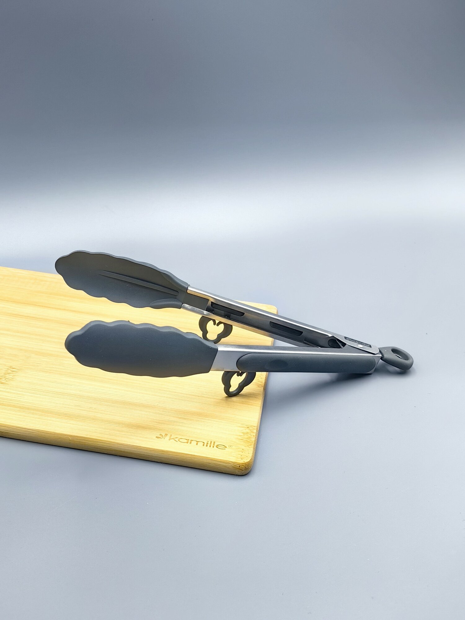 Щипцы силиконовые 30,5 см. Kamille КМ 7512 с ручками из нержавеющей стали (7512 / серый)