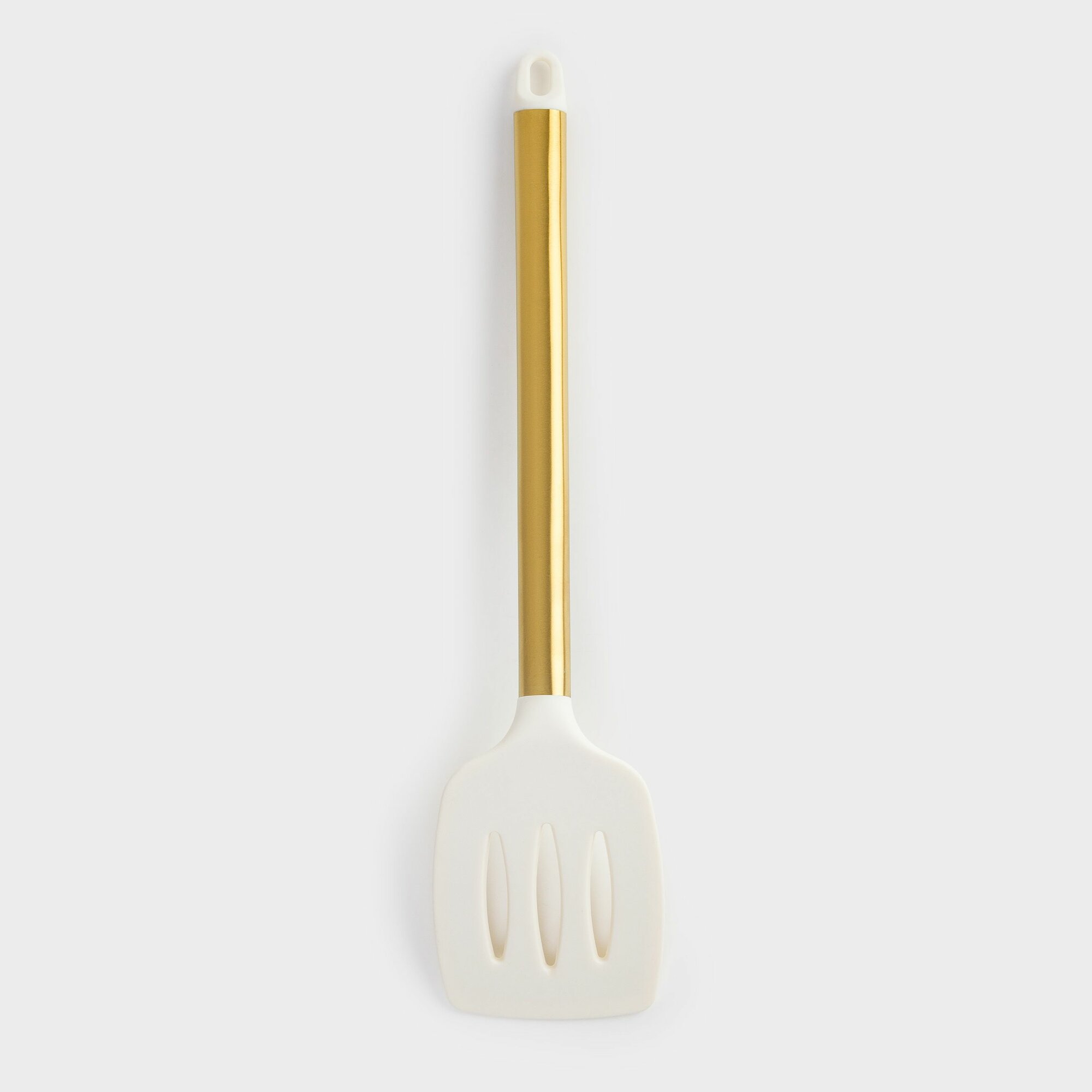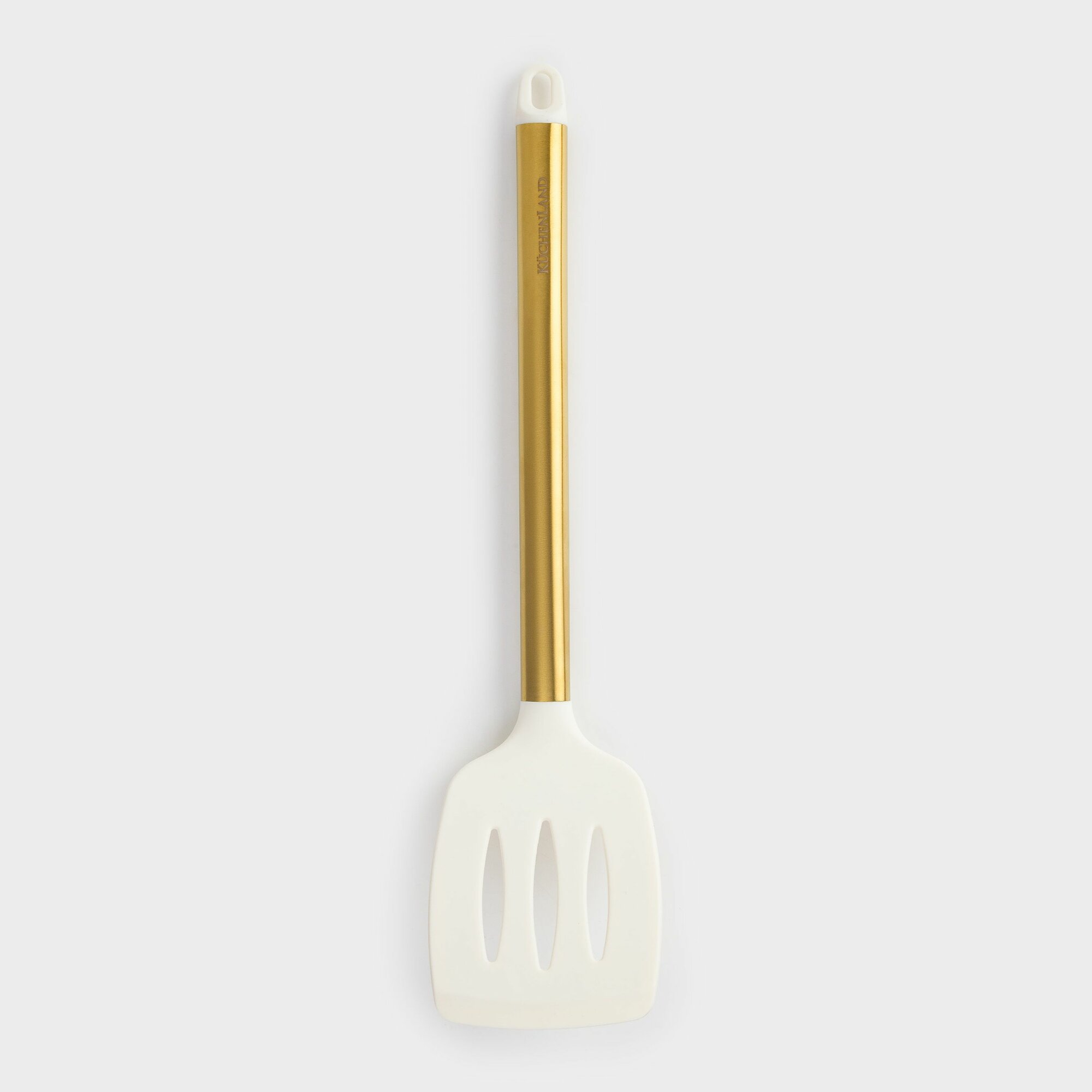 Лопатка, Kuchenland, 35 см, с прорезями, силикон/сталь, молочная, Bello gold интересное: