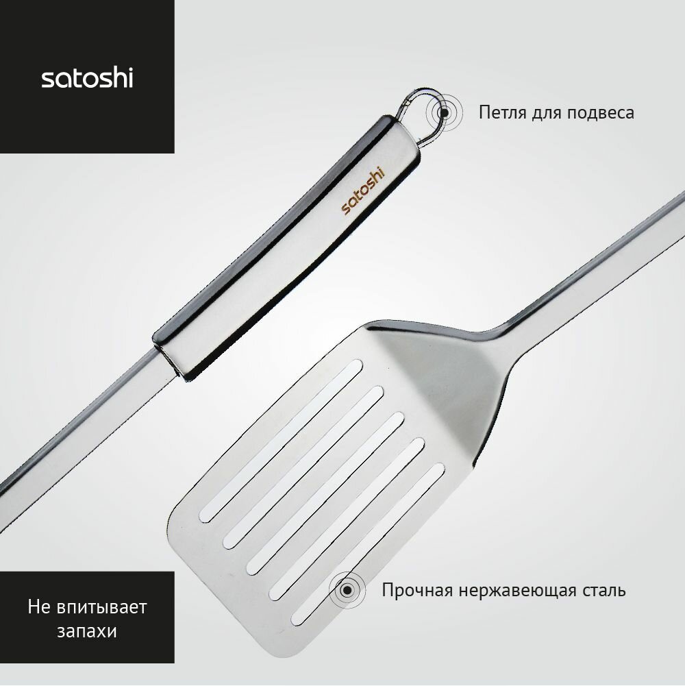 Лопатка кухонная кулинарная с прорезями SATOSHI Альфа, 33х7,5 см, нержавеющая сталь интересное: