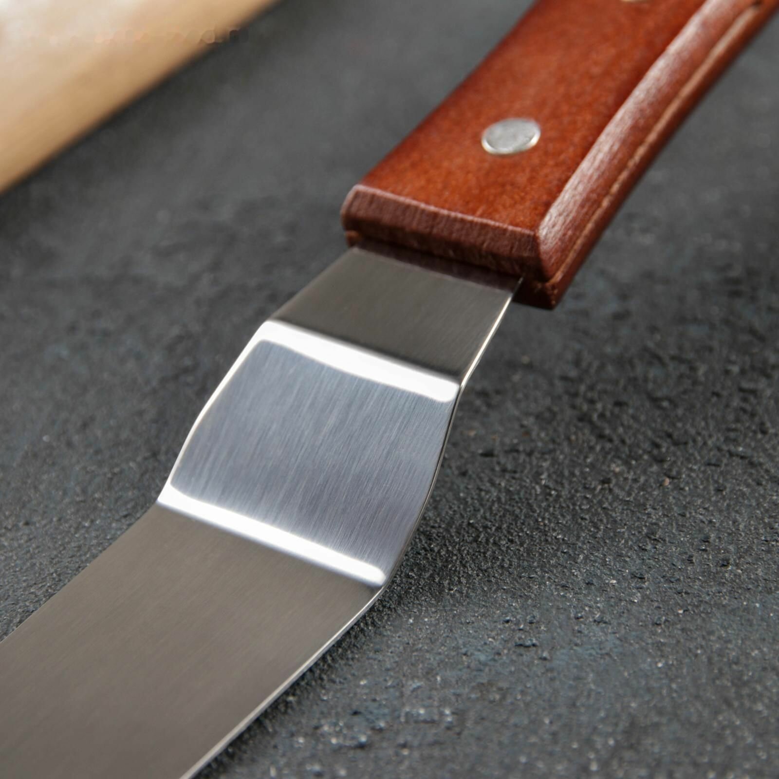 Лопатка-палетка кондитерская КНР с деревянной ручкой, изогнутая, 36,5 см