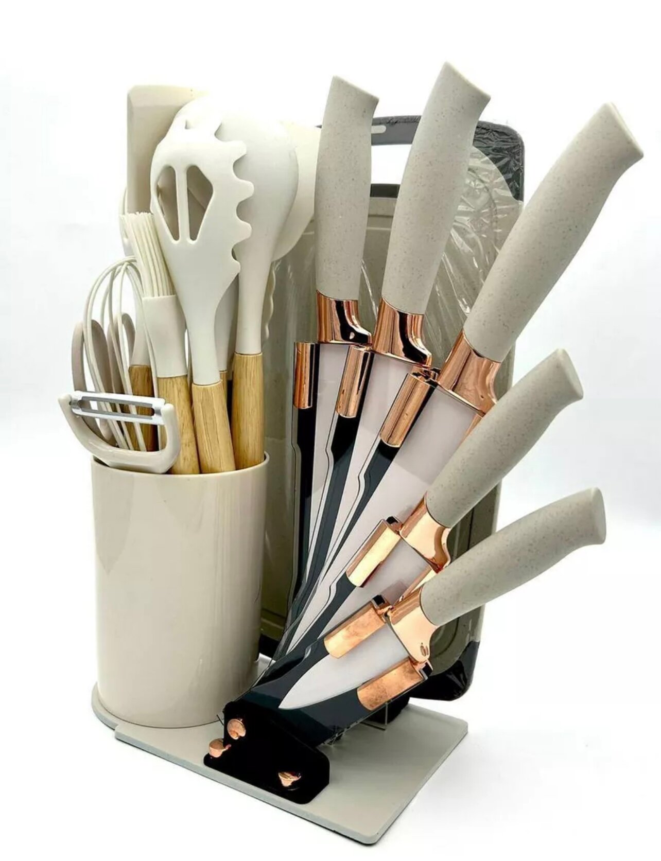 Набор кухонных принадлежностей, 20 элементов, деревянный и силиконовый, бежевый интересное: