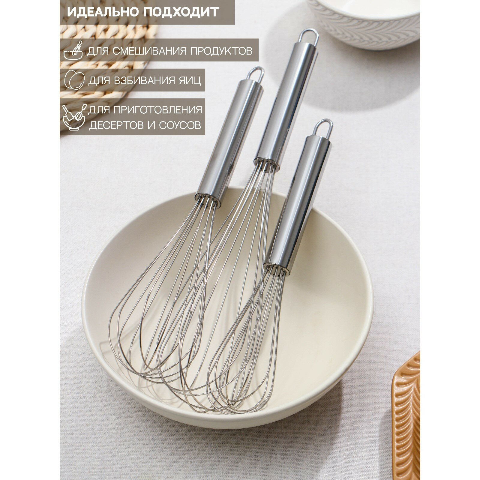 Набор венчиков для взбивания Доляна «Стандарт», 3 шт: 30 см, 25 см, 21 см, 4021306 интересное: