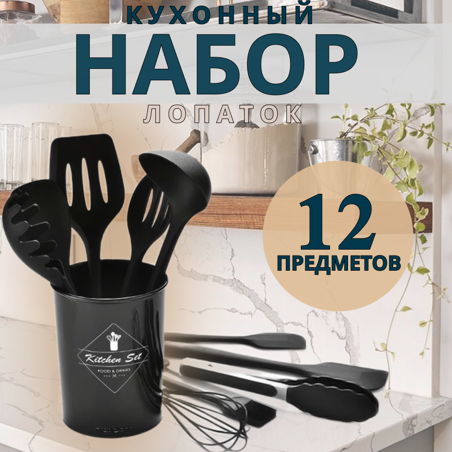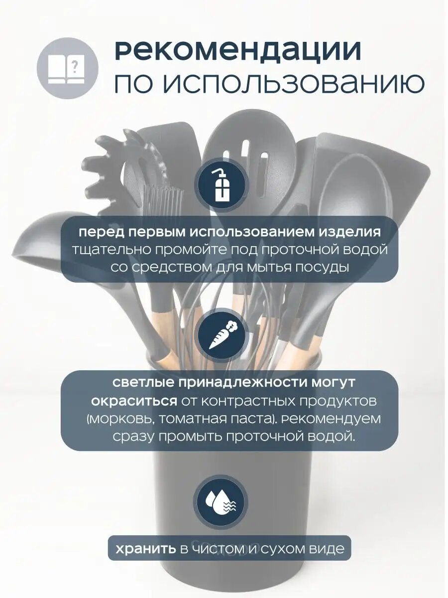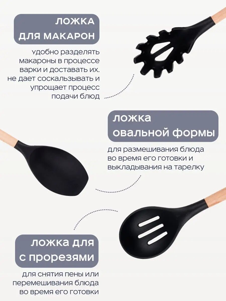 Набор кухонных принадлежностей 11 в 1, силиконовый с деревянной ручкой интересное: