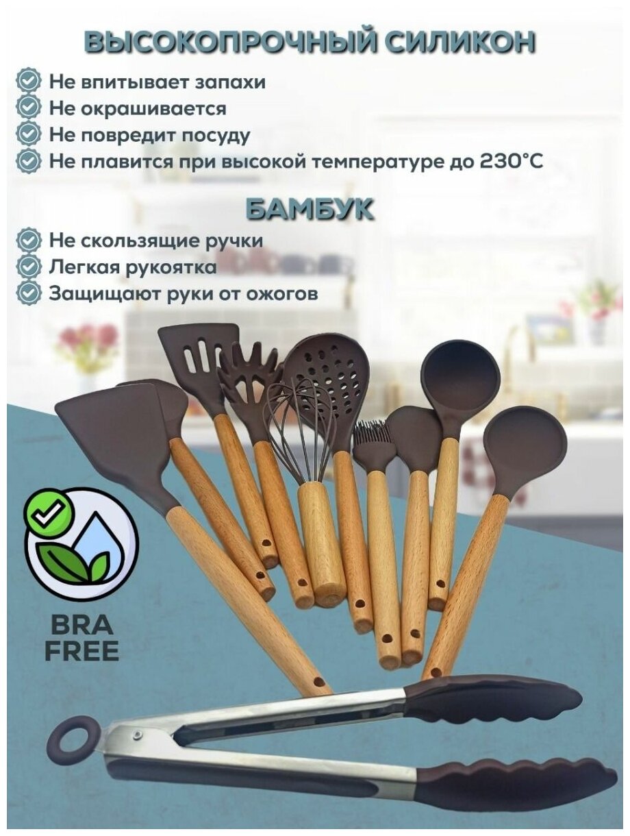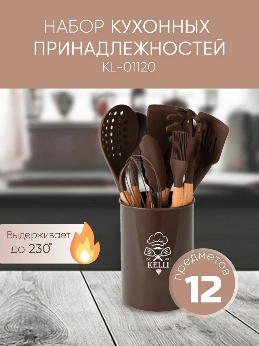 Купить Кухонный набор Kelli KL-01120 12 предметов состав бамбук и силикон шоколад