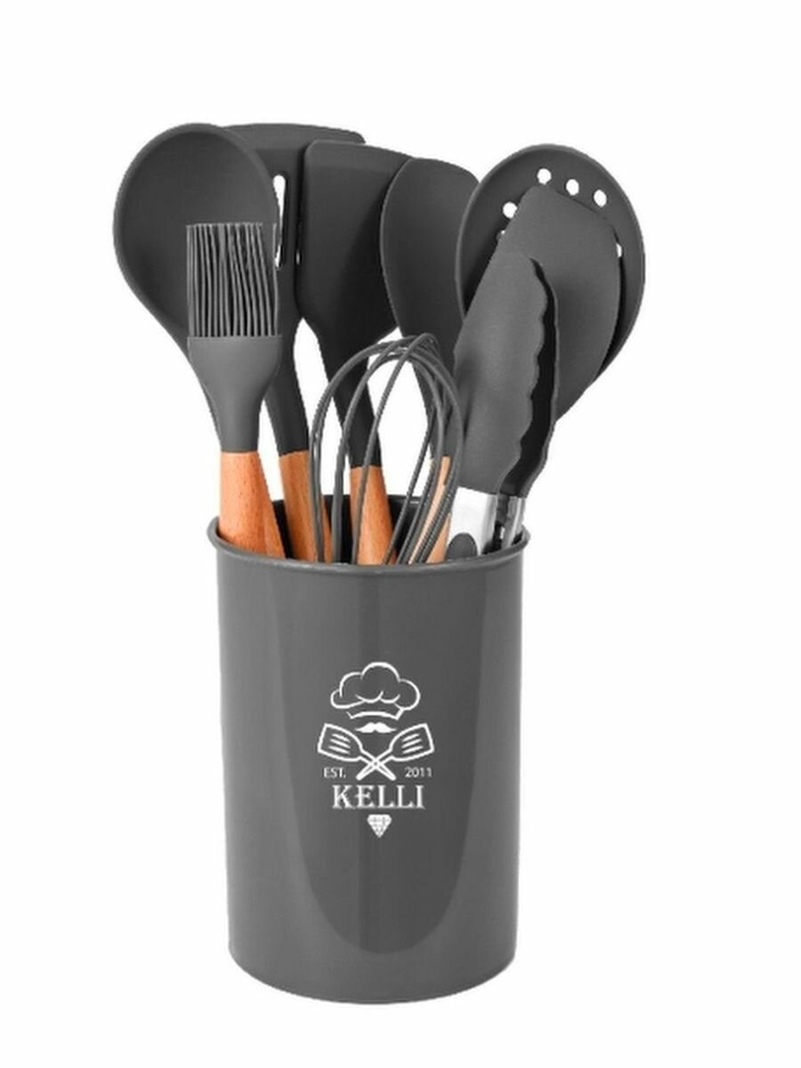 Кухонный набор Kelli KL-01120 12 предметов состав бамбук и силикон серый