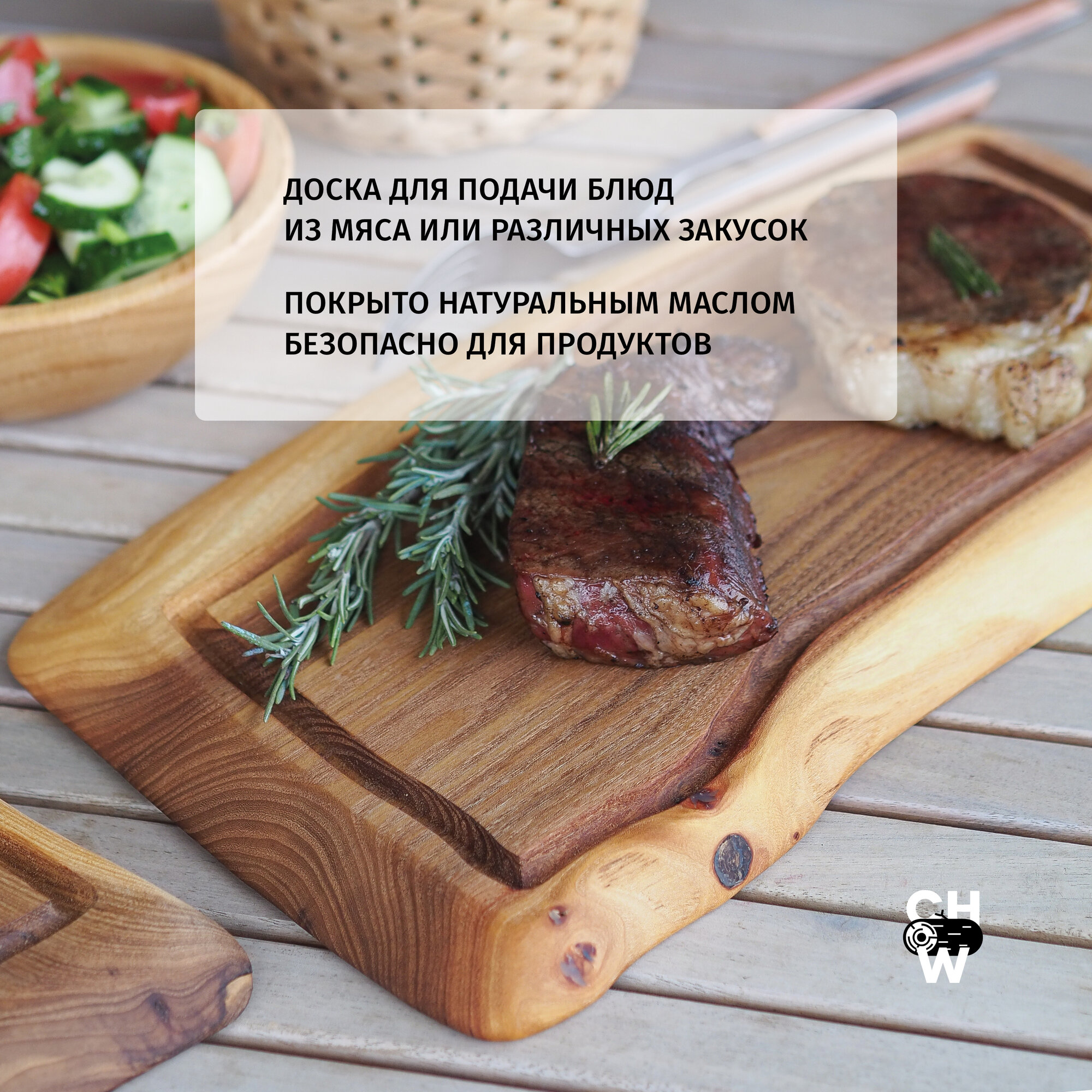 Доска разделочная ChoodWood 35x20 см цельный массив карагач, для стейка интересное: