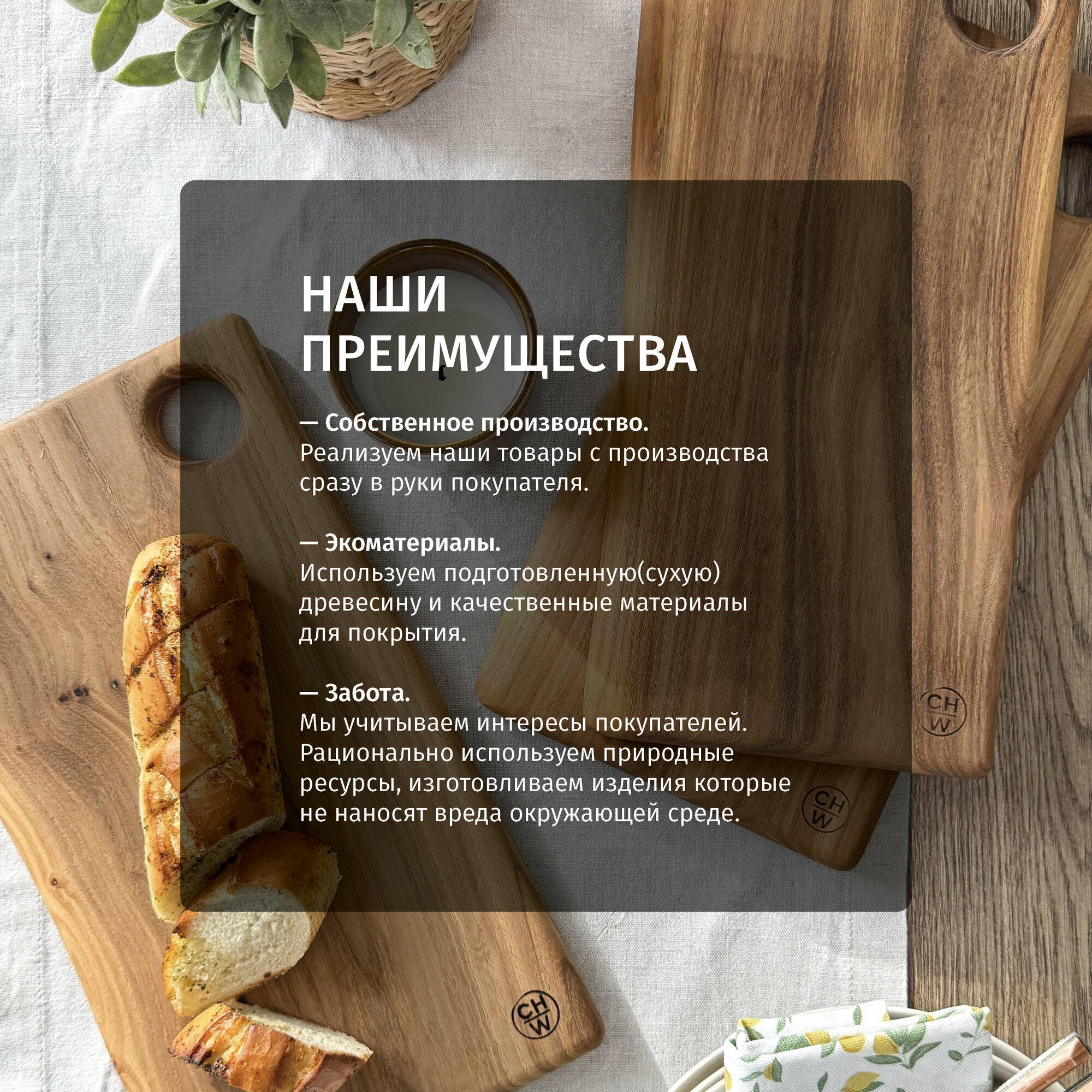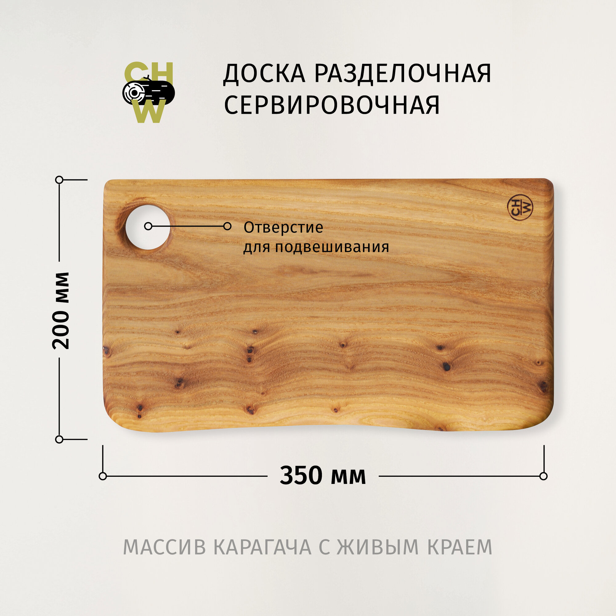 Разделочная доска из дерева Choodwood, 35x20см, цельный массив, карагач, для сыра и овощей интересное: