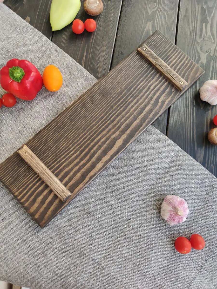 Доска для сервировки мяса, рыбы, нарезки из дерева на ножках интересное: