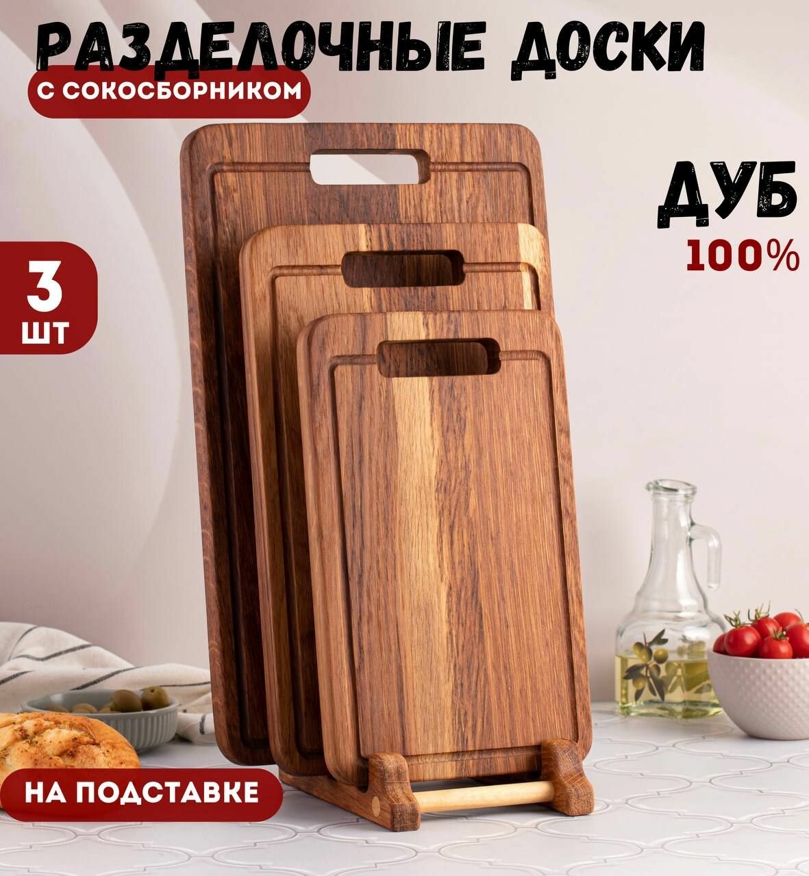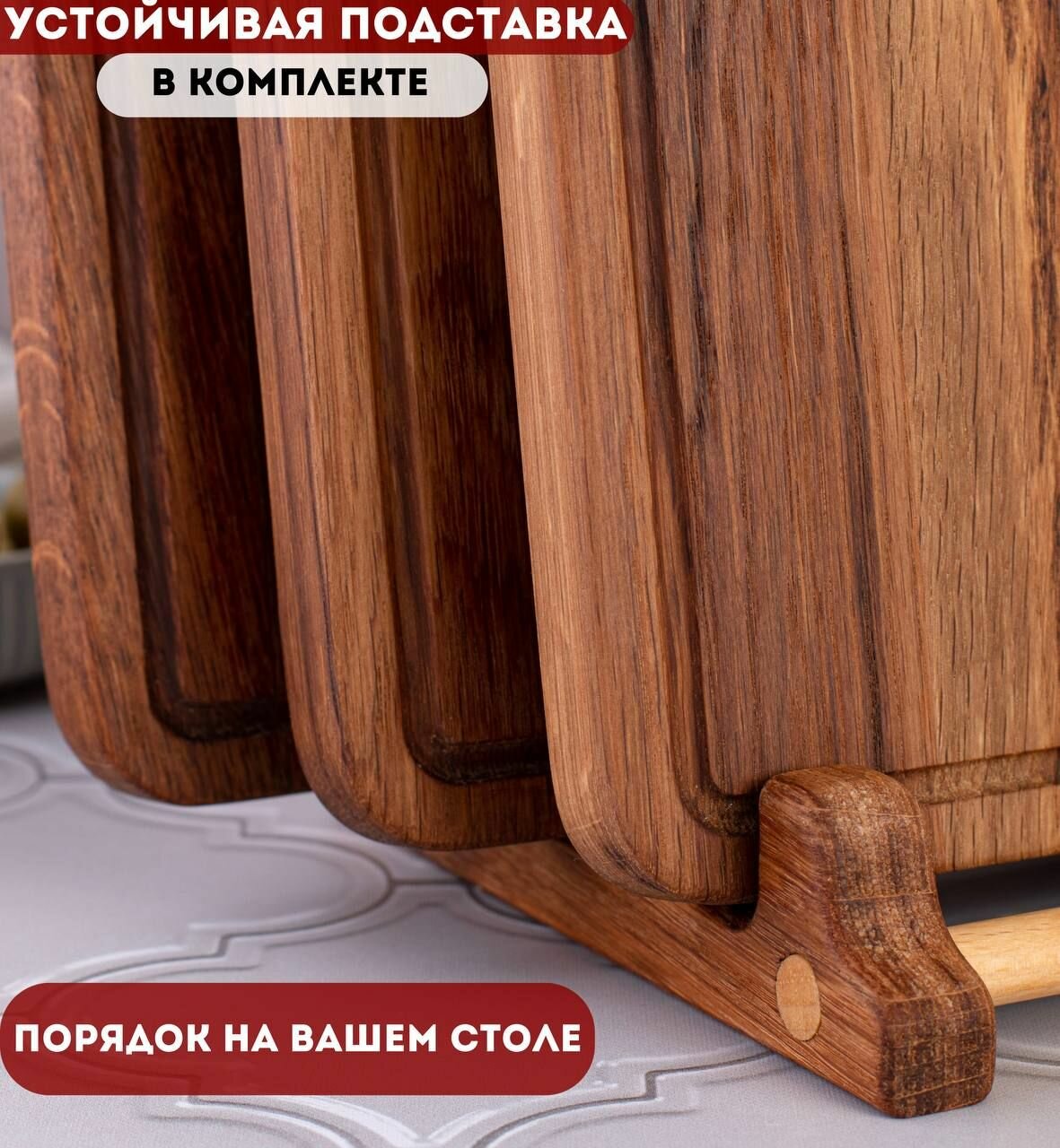 Разделочные доски набор деревянная дуб 3шт в наборе, подставка в комплекте