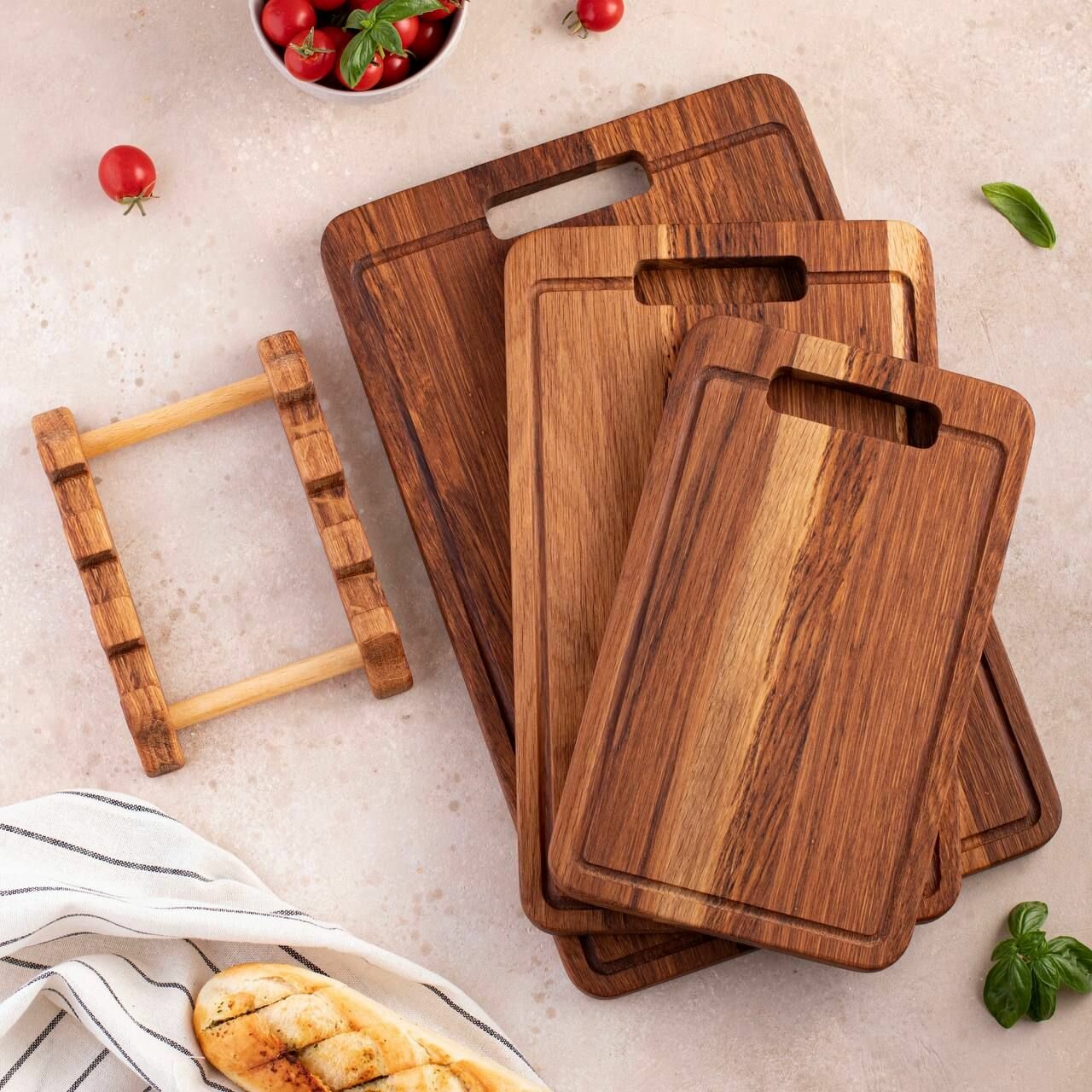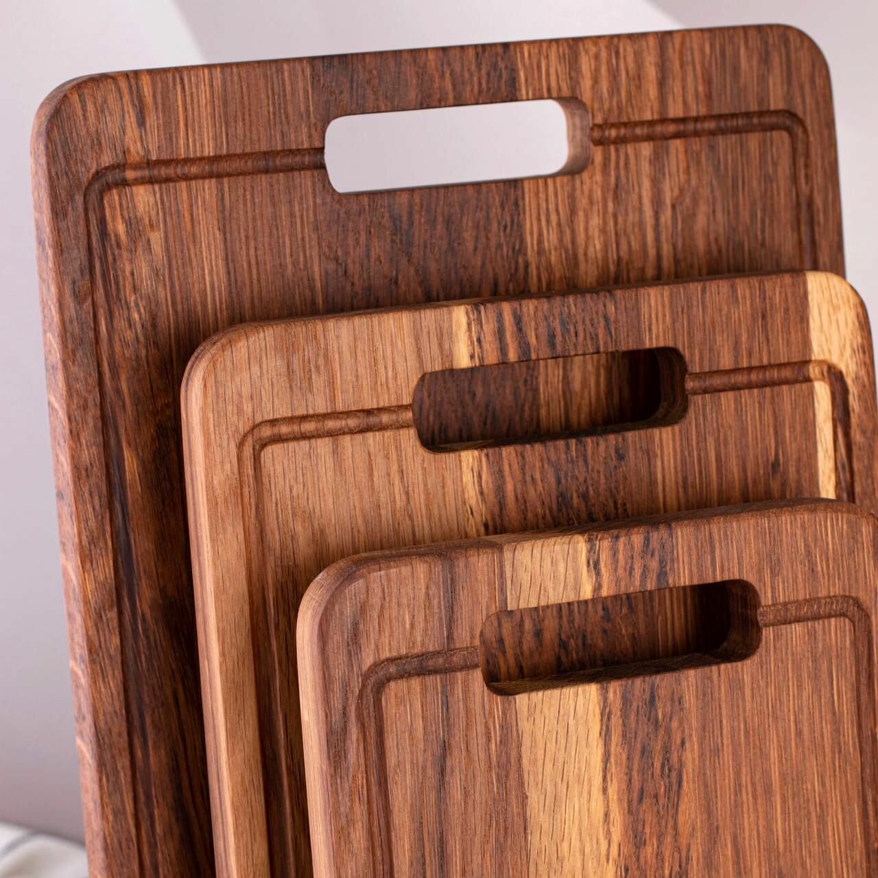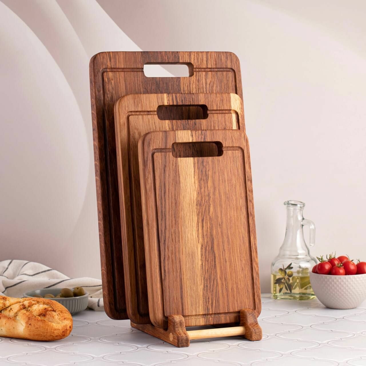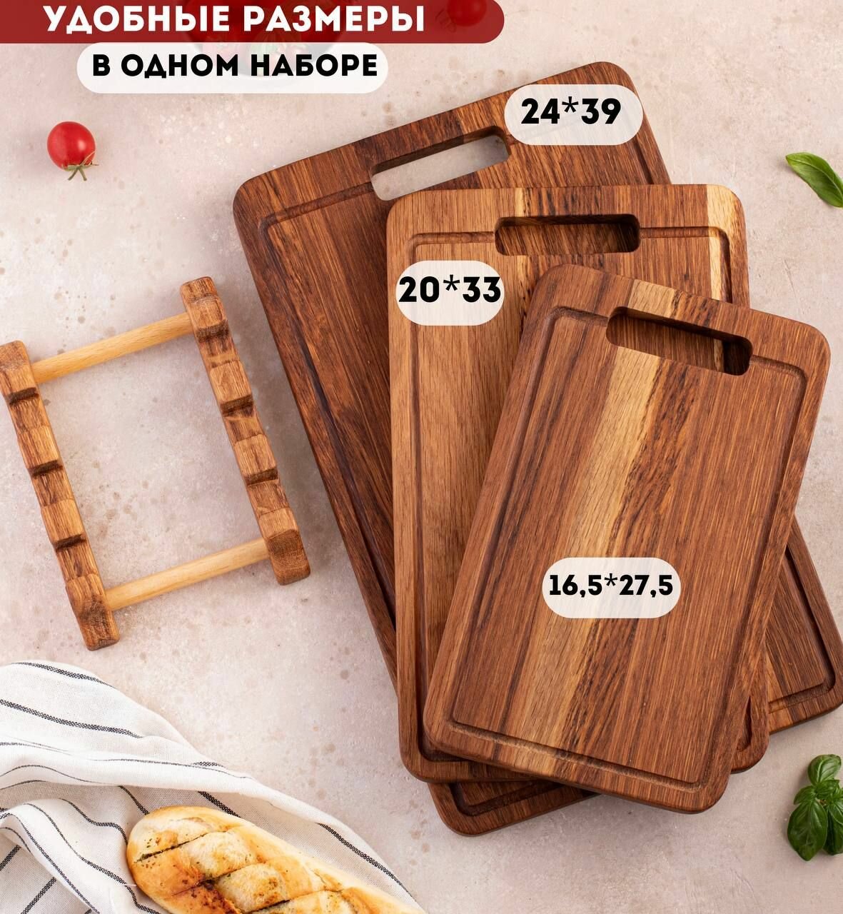 Набор разделочных досок деревянных с подставкой для кухни 3шт, с подставкой, дуб