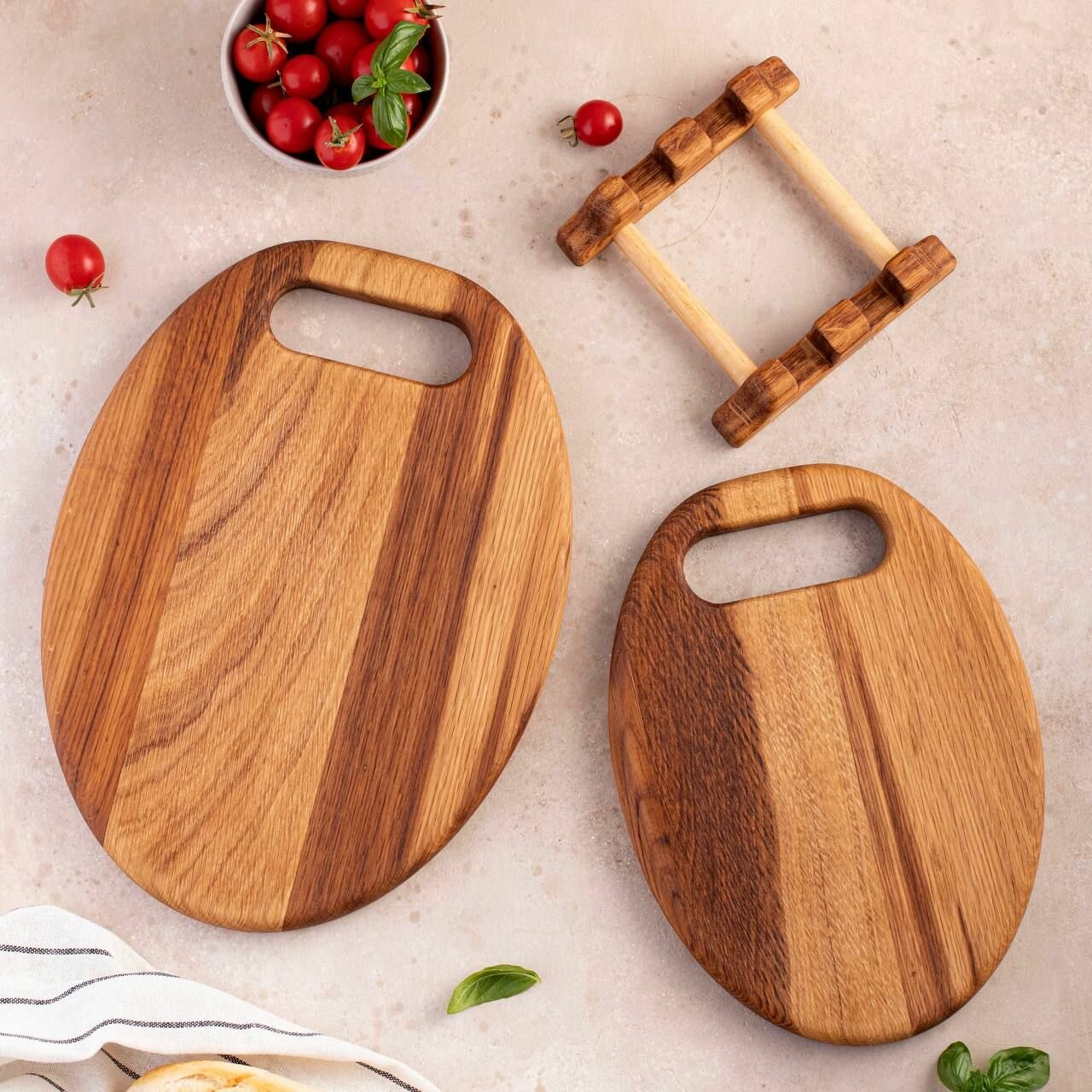 Разделочные доски набор деревянные дуб 2шт на подставке