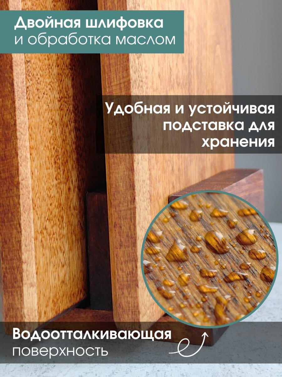 Доска разделочная деревянная для кухни набор + подставка, Набор 2 в 1