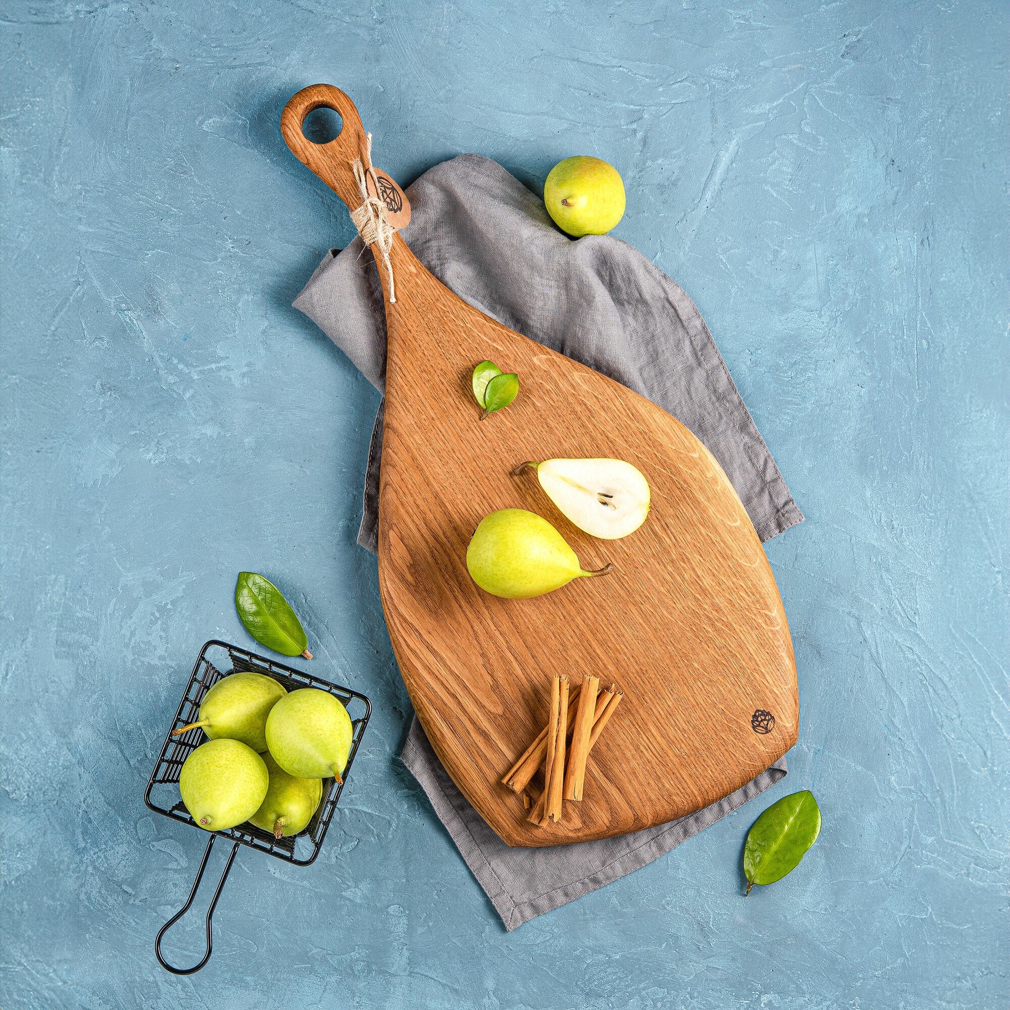 Деревянная разделочная доска из цельного дуба на кухню/Сервировочная кухонная доска из дерева для подачи. интересное: