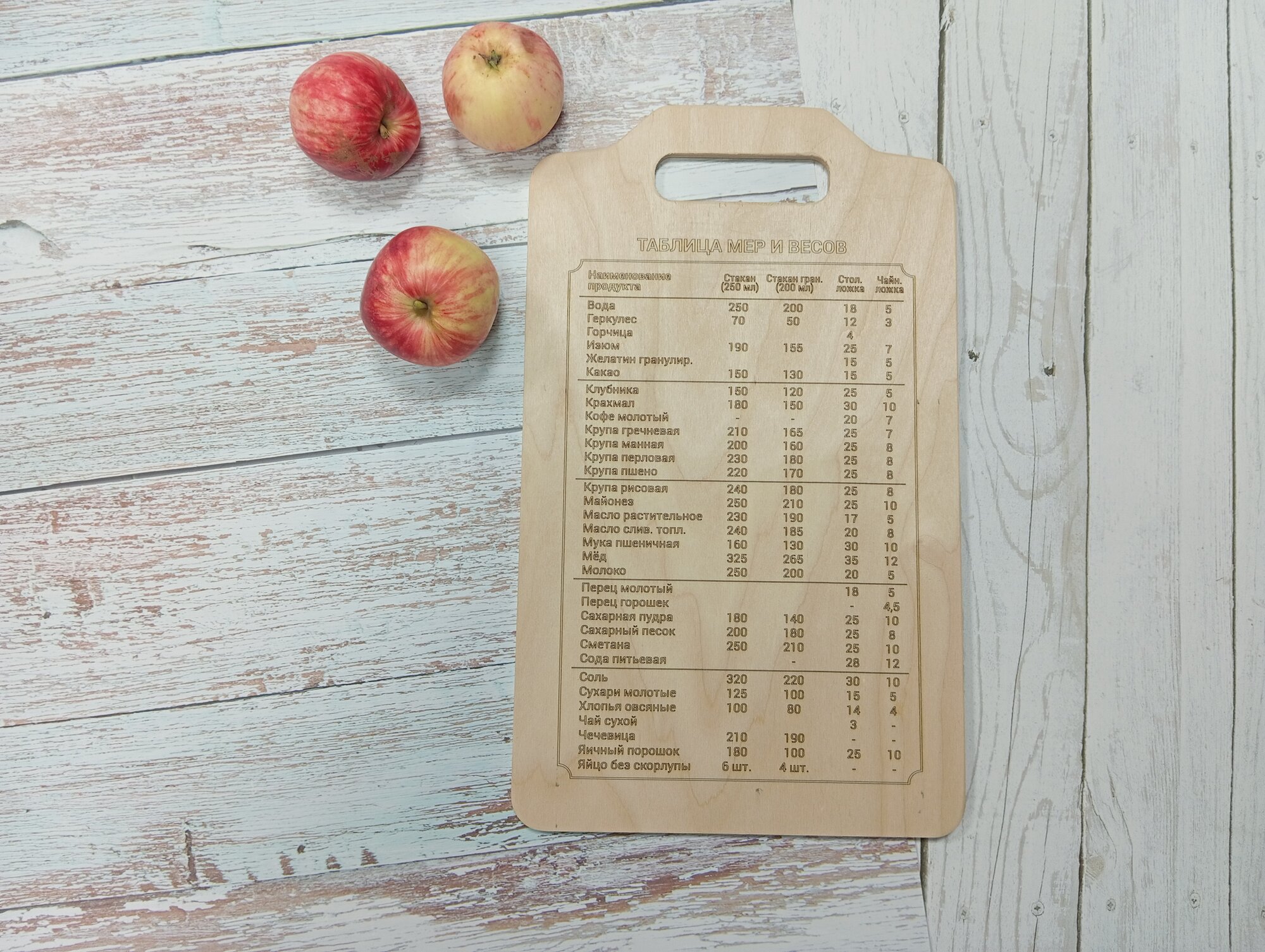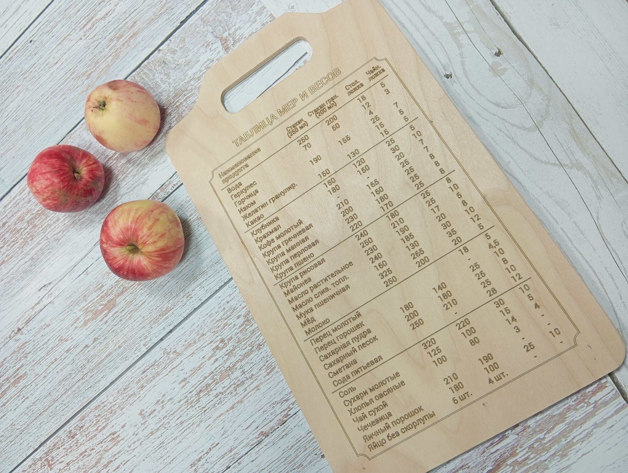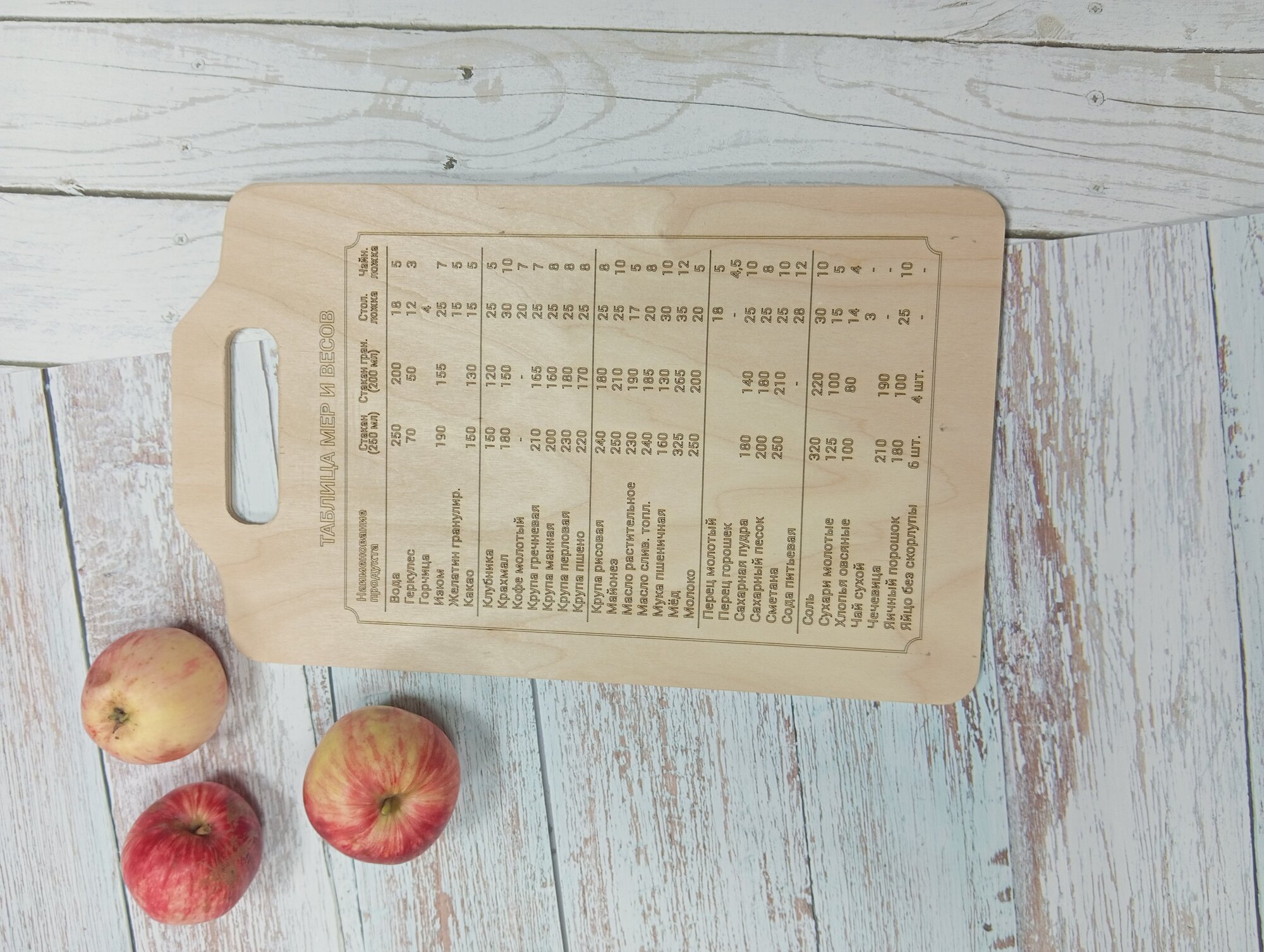 Доска разделочная деревянная "Гравированная таблица мер" 29 х 18 см.