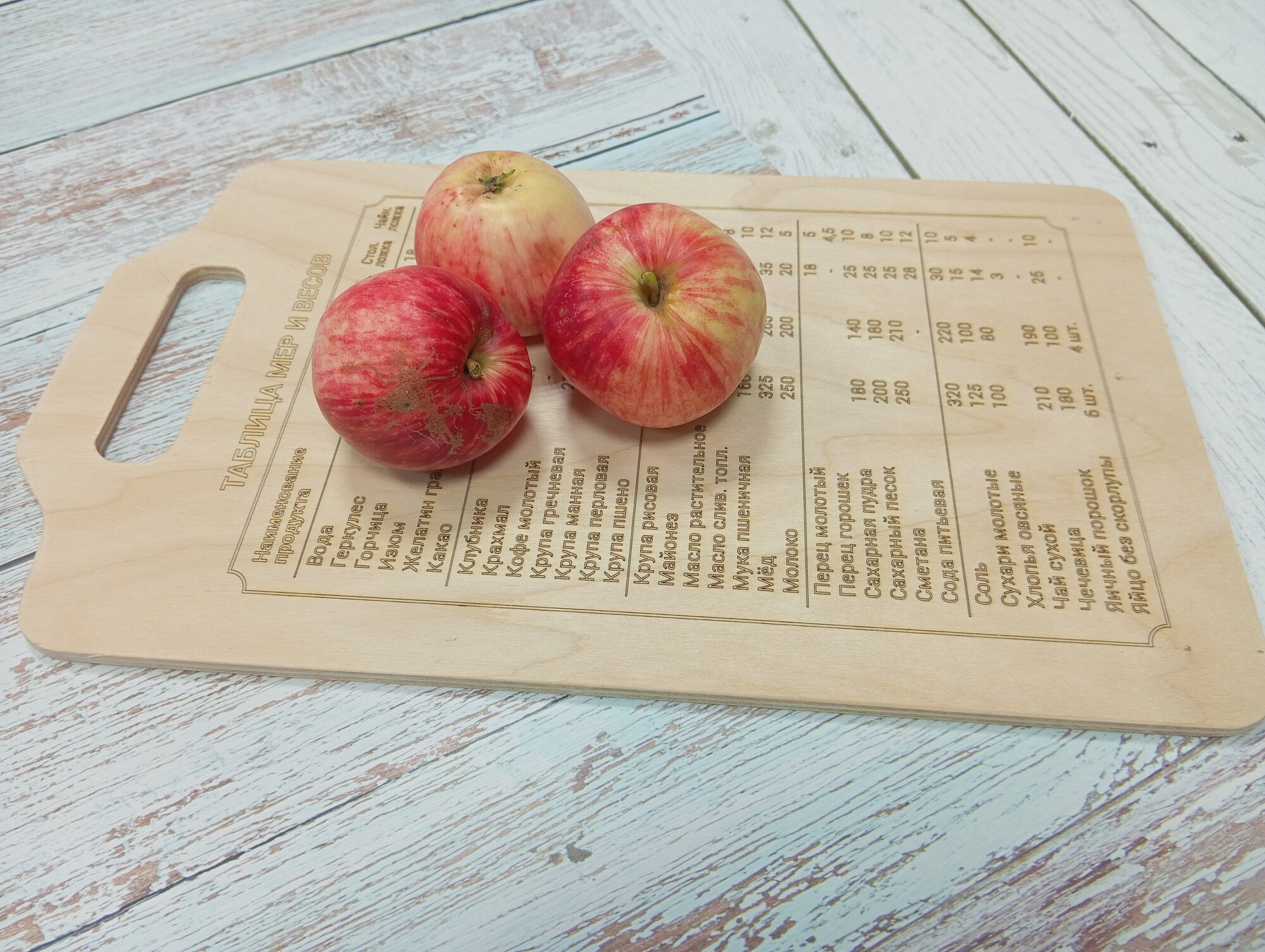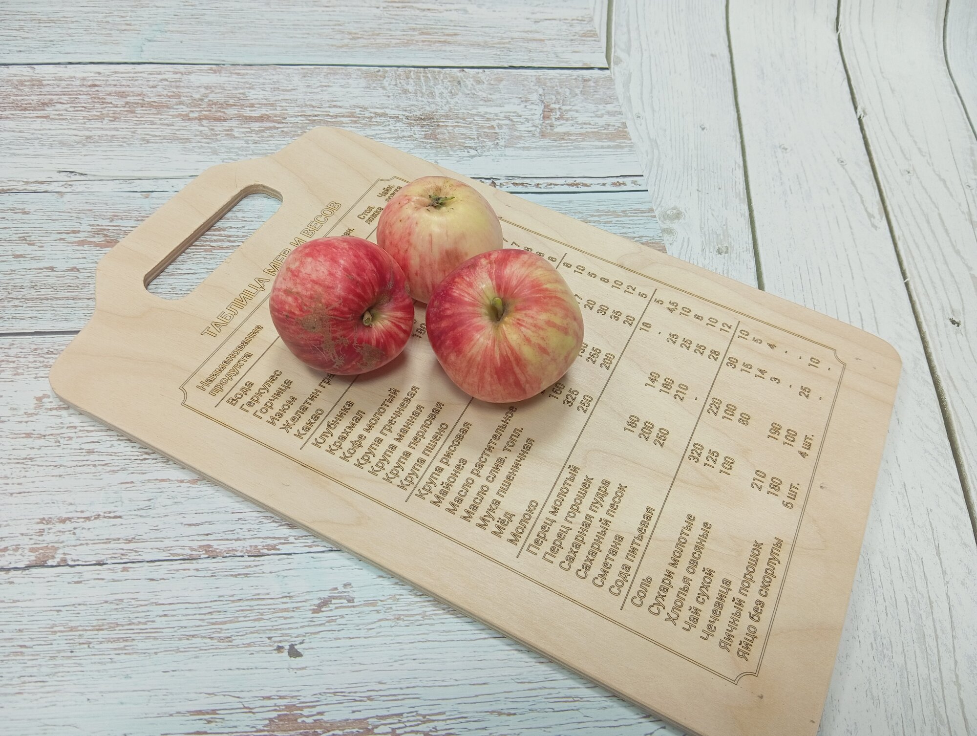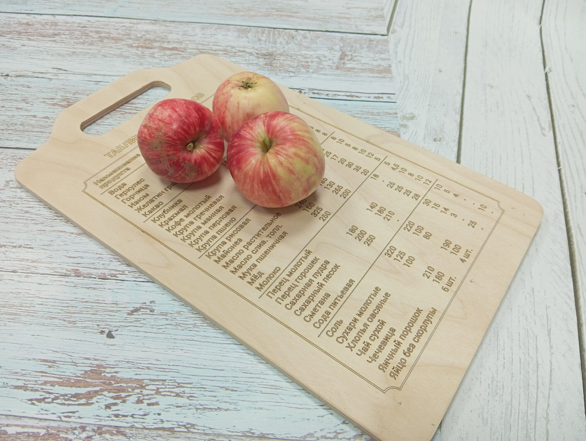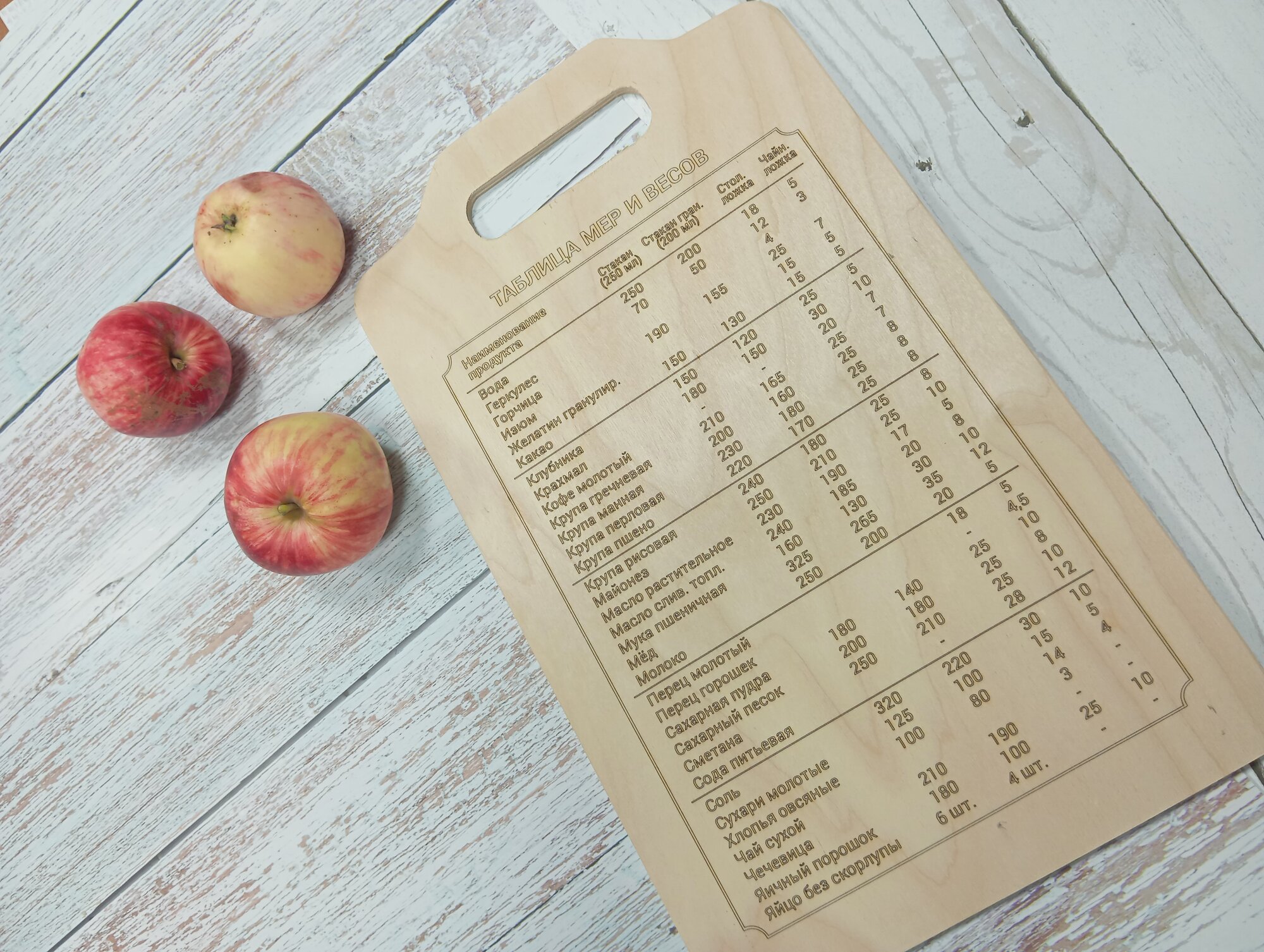 Доска разделочная деревянная "Гравированная таблица мер" 29 х 18 см.
