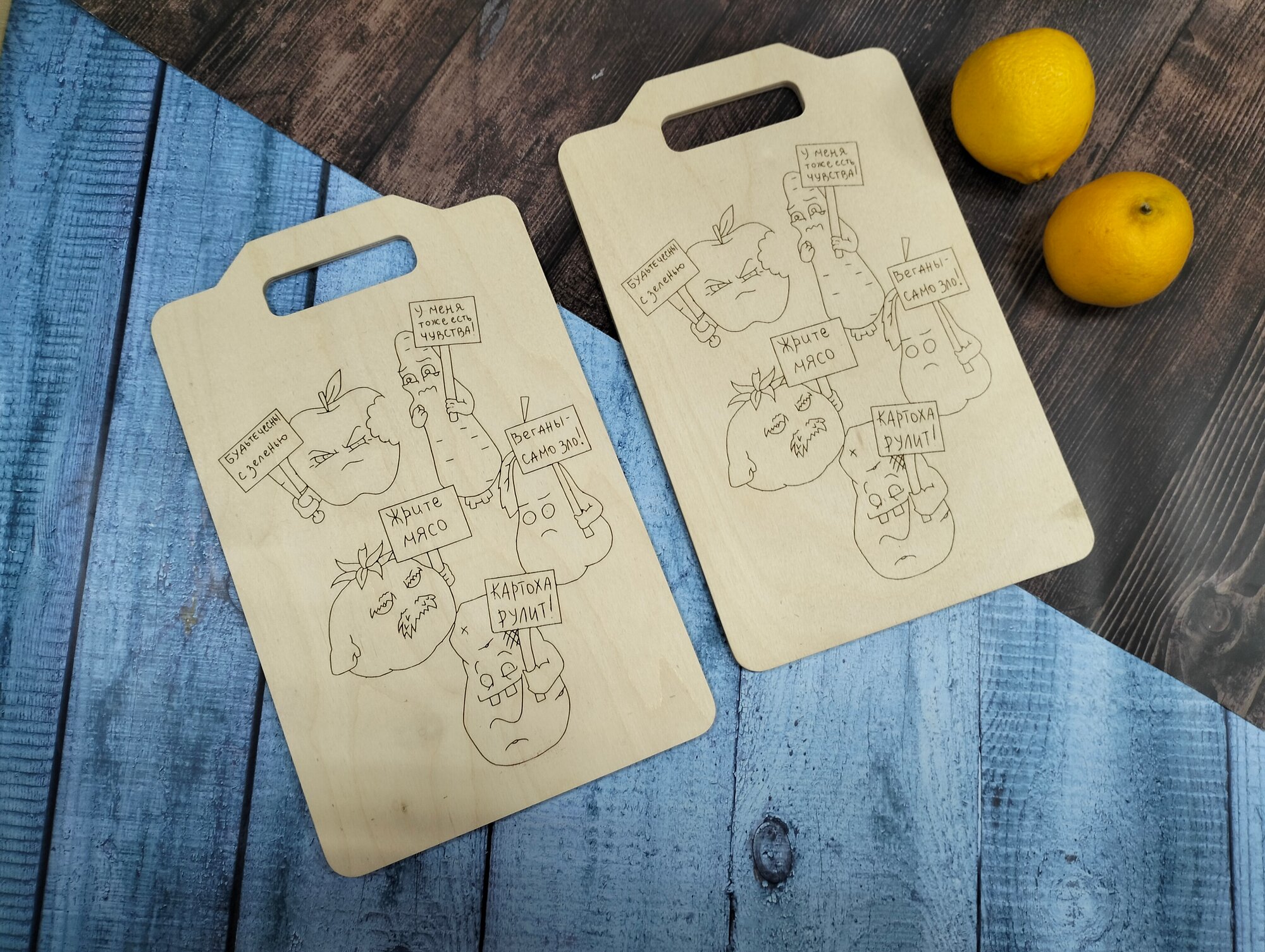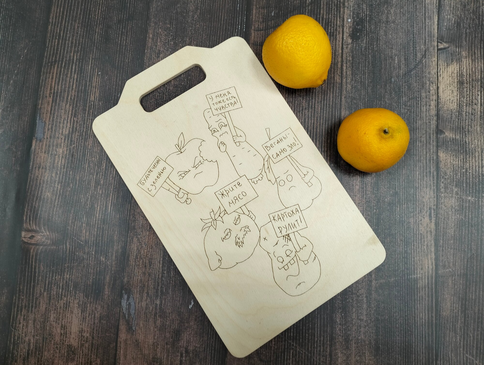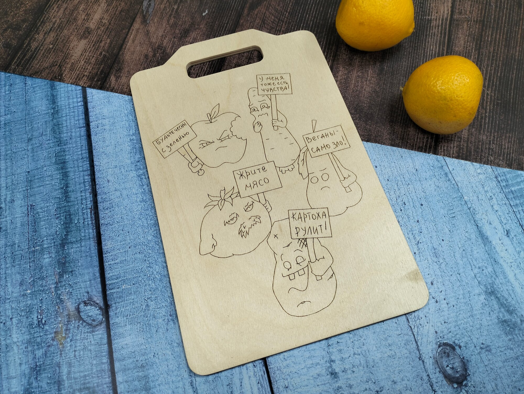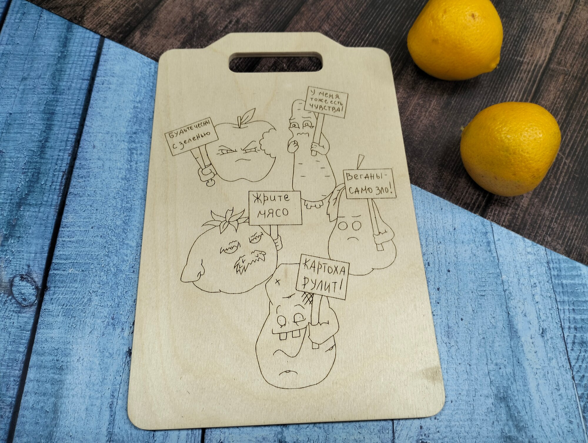 СохранитьДоска разделочная гравированная "Овощи с приколом ' 29х18 см, доска для кухни с овощным приколом . интересное: