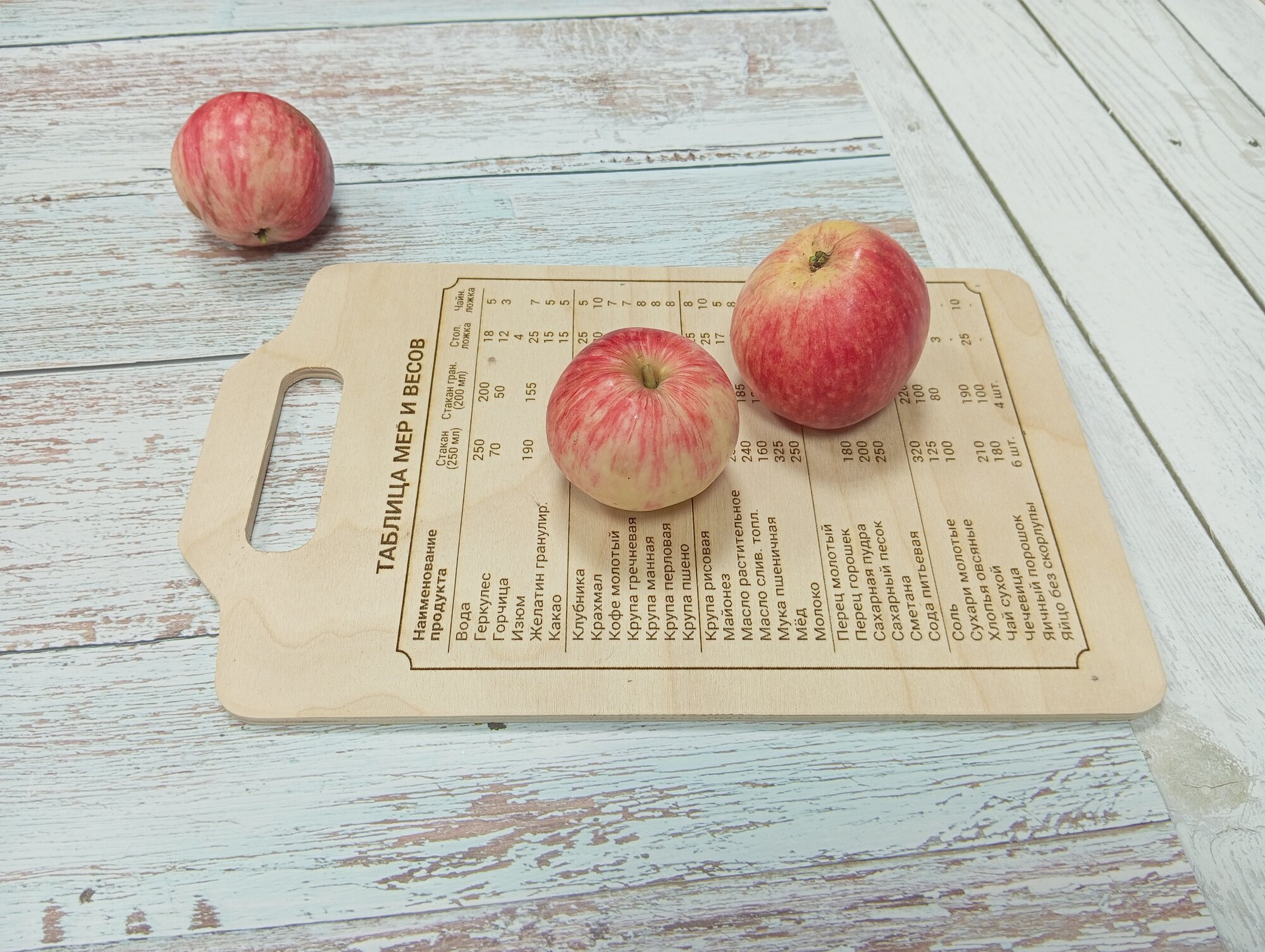 Доска разделочная деревянная "Гравированная таблица мер" 35 х 21 см.